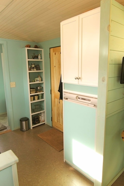 Live simply but beautifully! Whether as your main home, guest place or get-away cabin, this custom built 32’x8' tiny home features all the amenities of a larger home and desirable home finishes in wood – not cheap plastic or composites. It’s charming exterior style resembles a Maine cabin, grey clapboard with weathered red cedar shingles and standing seamed metal curved roof ($$$). Inside sustainable cork flooring greets you with homey slat & bead board wooden walls, along with an unusual curved wooden ceiling. Seven Anderson windows add brightness, style & cross-ventilation. There’s distinct living/dining, sleeping, cooking, laundry & bathing spaces.