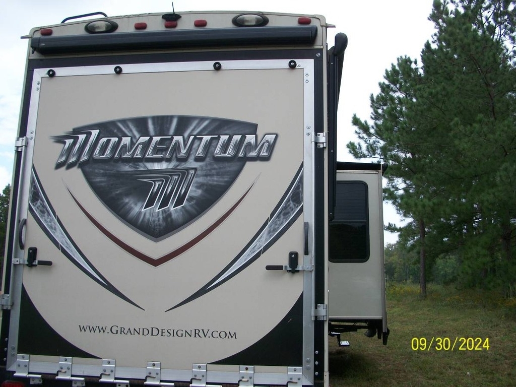 “2015 Grand Design Momentum Fifth Wheel Toy Hauler, measuring 42.75