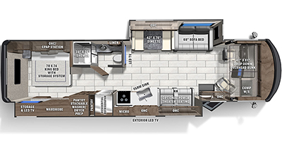 This Encore is powered by a 7.3L V8 engine and a 6-speed automatic transmission with 6,011 miles. The overall length is 36.83 feet and it comes equipped with 2 power retractable slide-outs, 1 power retractable awning, 2 A/C units, outdoor entertainment, and plenty of room to sleep 8. This unit has been well-maintained.