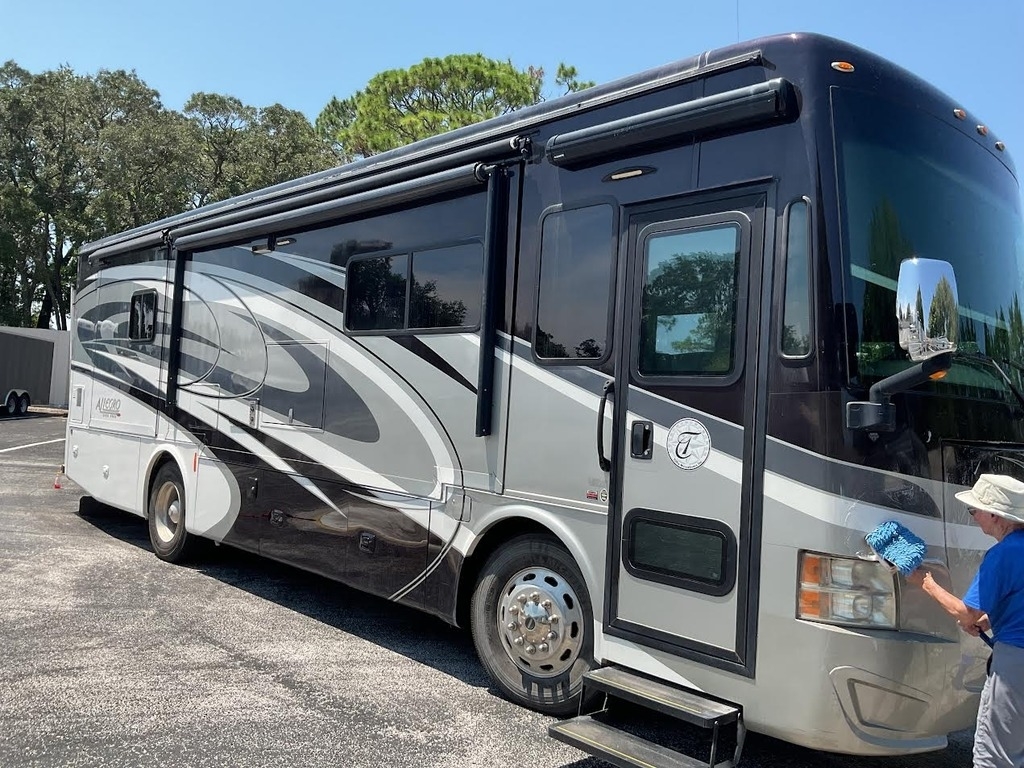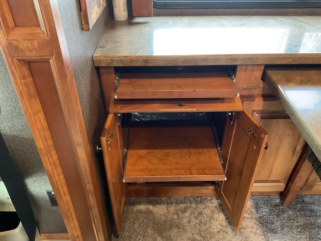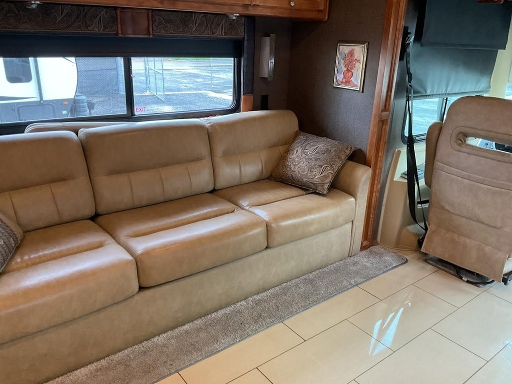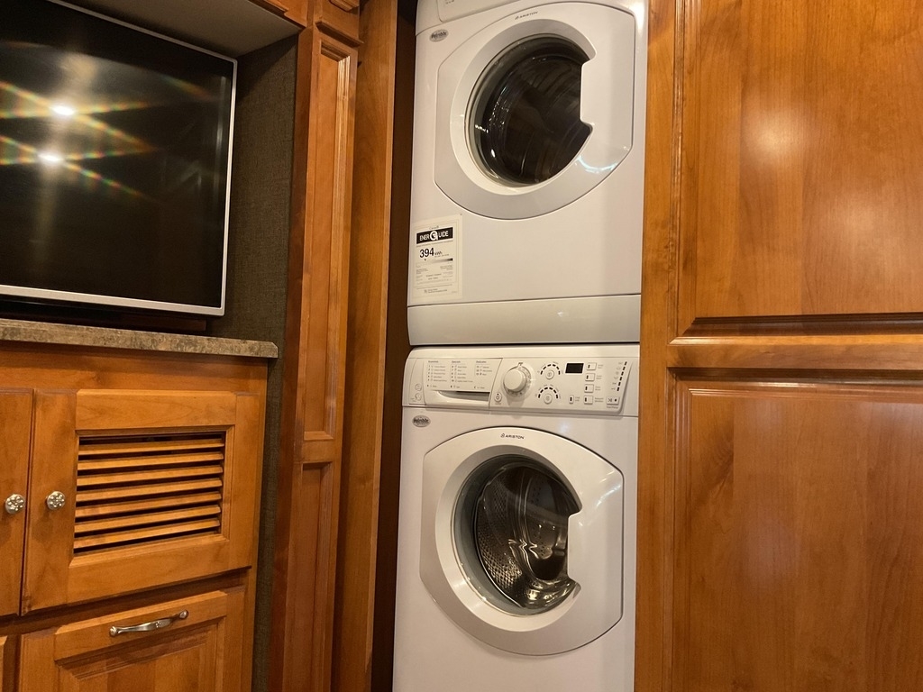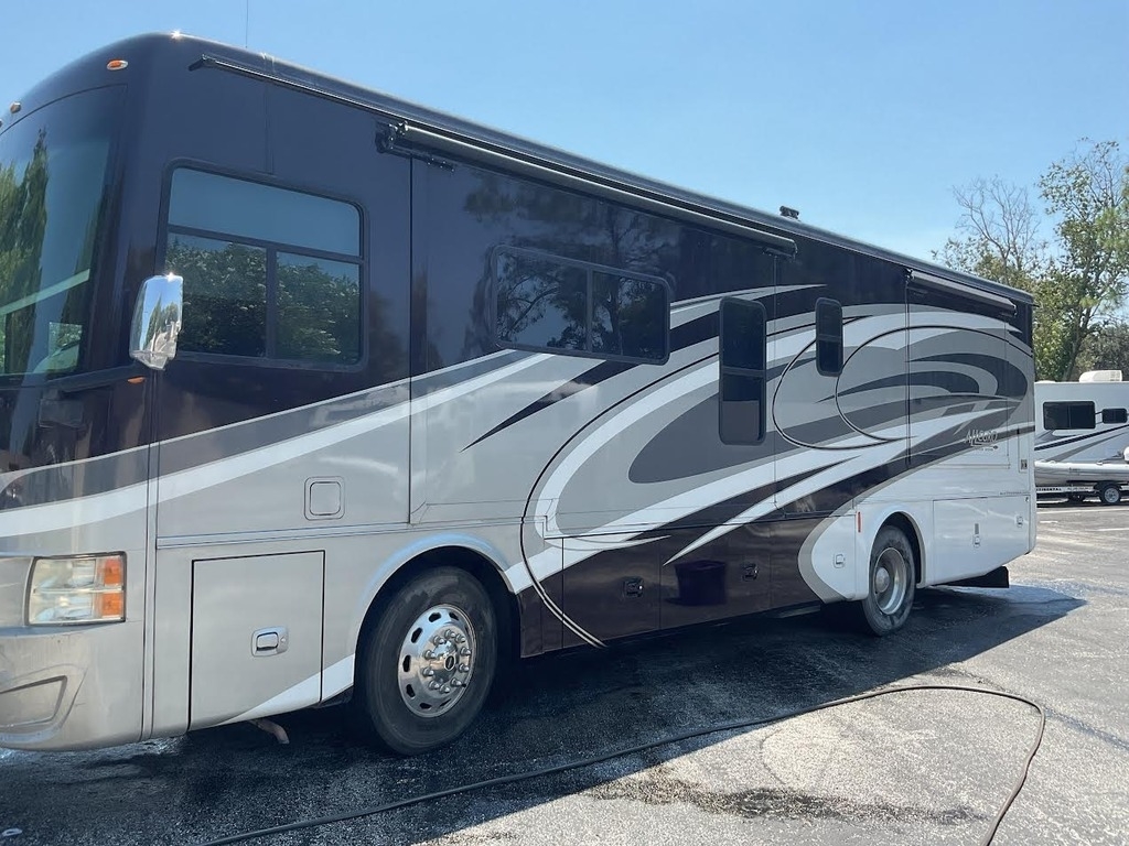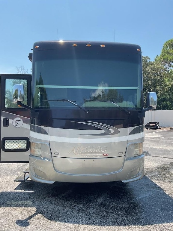 This Tiffin is powered by a Cummins 6.7L 360 engine and an Allison 6-speed transmission on a Freightliner chassis with 81,600 miles. The overall length is 35.17 feet and comes equipped with 4 power slide-outs, 1 power awning, 2 A/C units, an Onan generator, solar panels, a stackable washer and dryer, and plenty of room to sleep 4. This unit has been well-maintained.