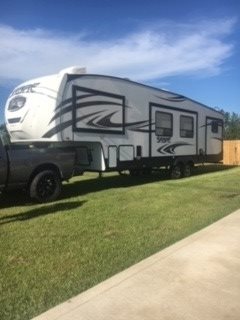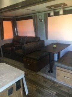 This 2018 Sabre is 38' in length and comes equipped with two bathrooms and has 3 Slide Outs, an Awning, 2 AC Units and sleeps 10. This is a non-pet/non-smoking fifth wheel and there has not been any accidents or water damage.