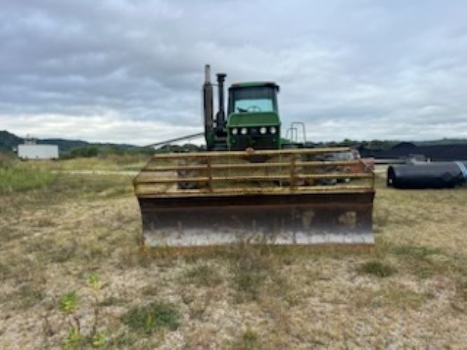 equipped with a 12 ft pinned Degelman blade, perfect for snow removal and other