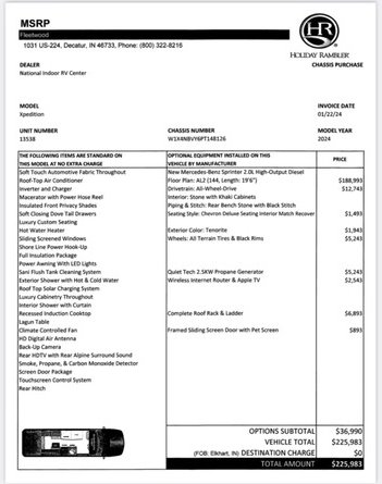 “For sale is a 2024 Holiday Rambler Xpedition AL2 Class B Diesel in excellent condition. This luxury diesel camper offers top-of-the-line comfort and performance in a compact, easy-to-drive package. Well-maintained and fully equipped, it’s ready for adventure, whether exploring the open road or weekend camping.”