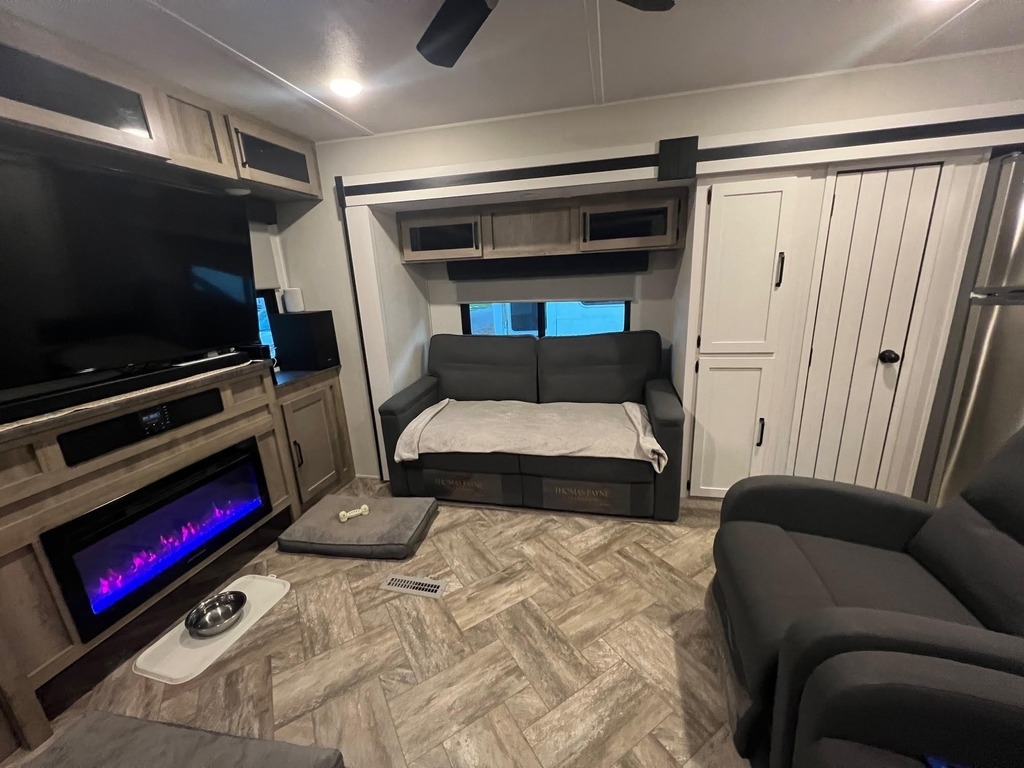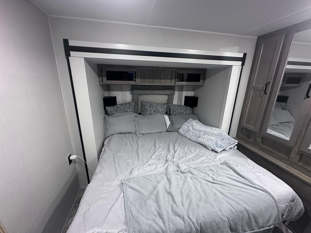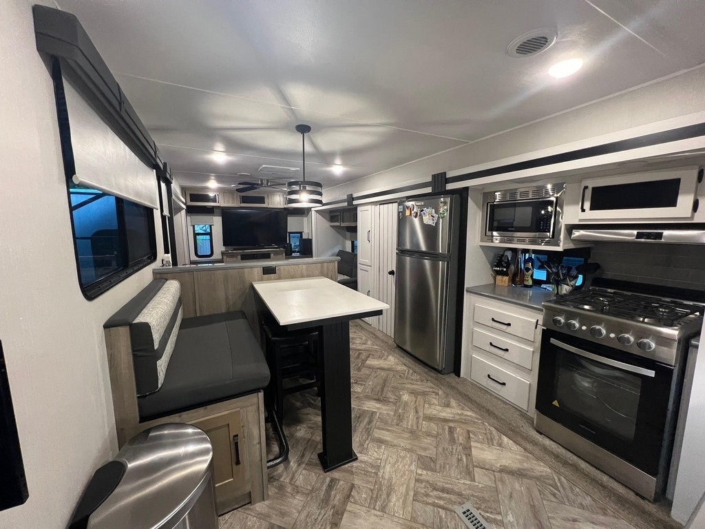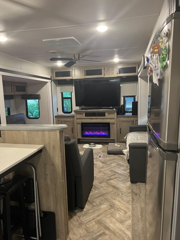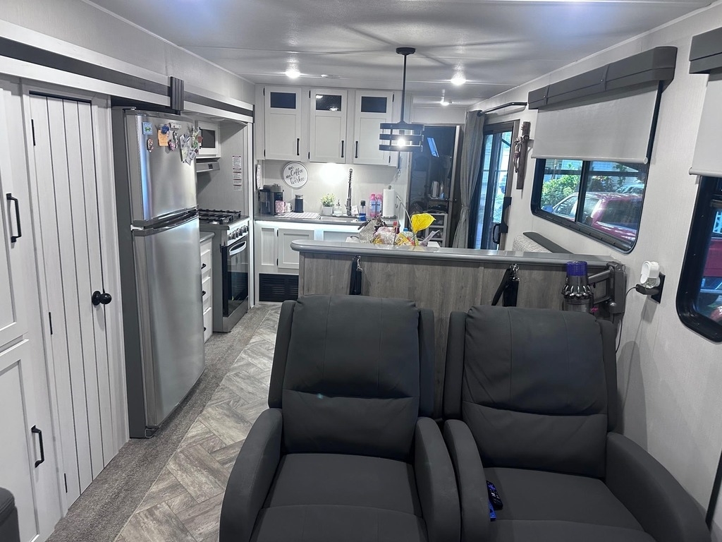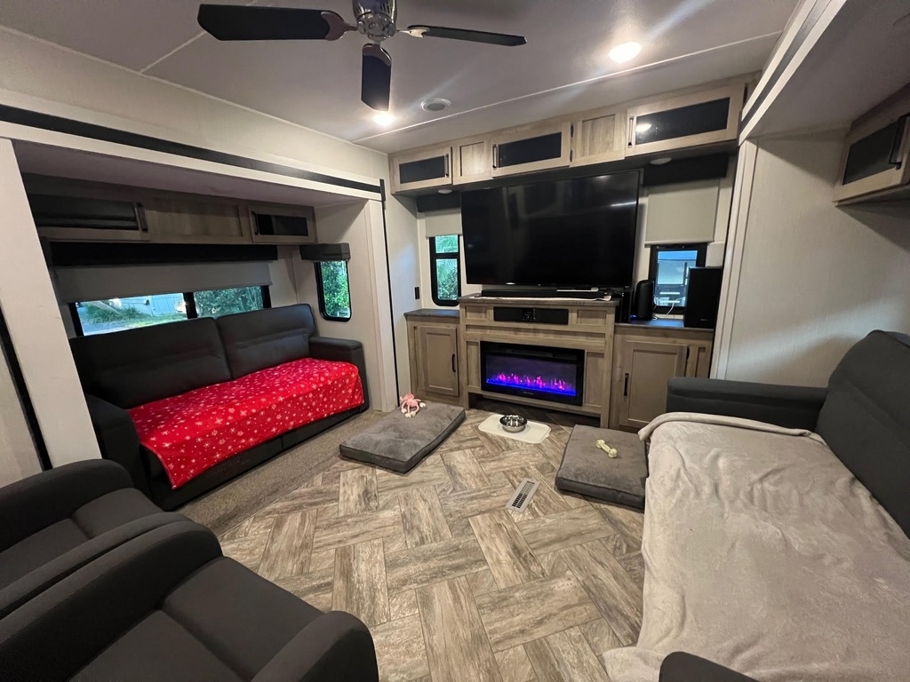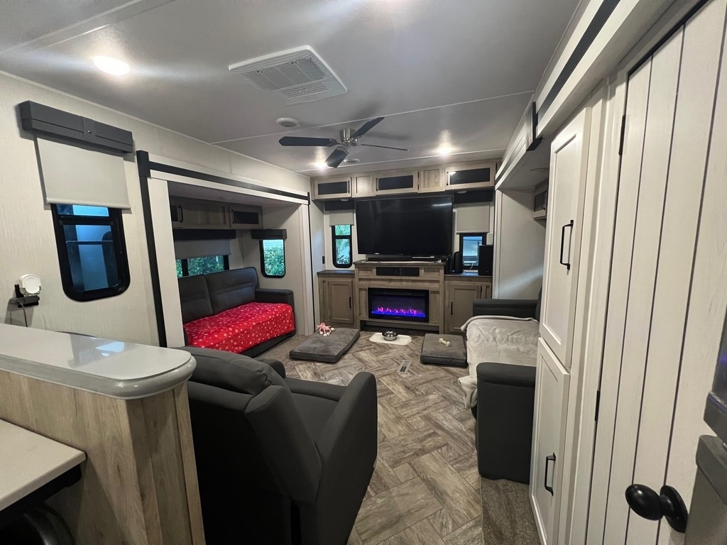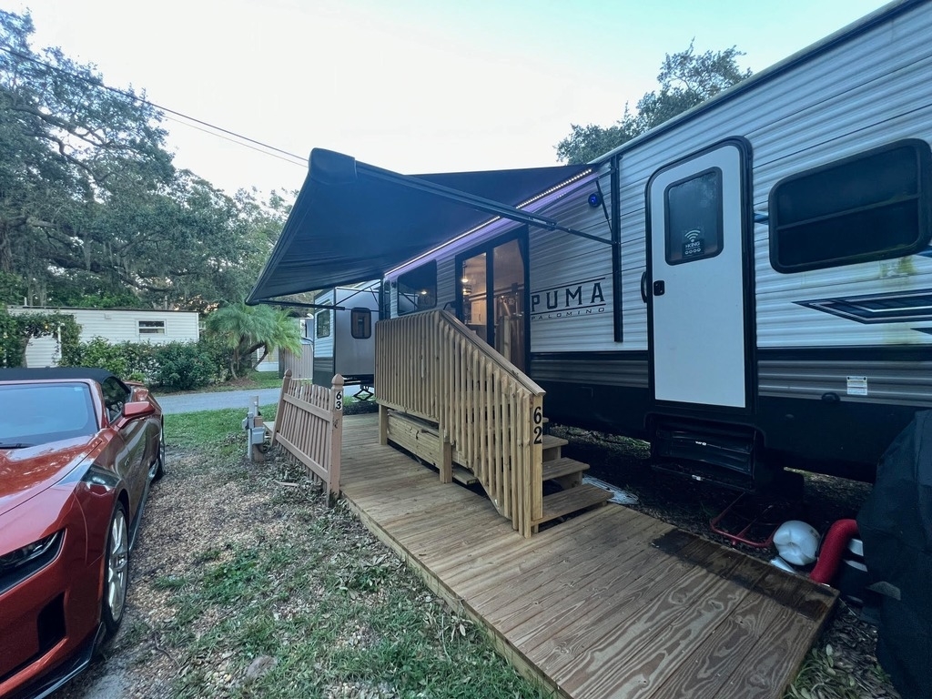 This Palomino has an overall length of 40.5ft and comes equipped with 3 slide outs, 1 18ft power awning, ac, washer/dryer and room to sleep 6.