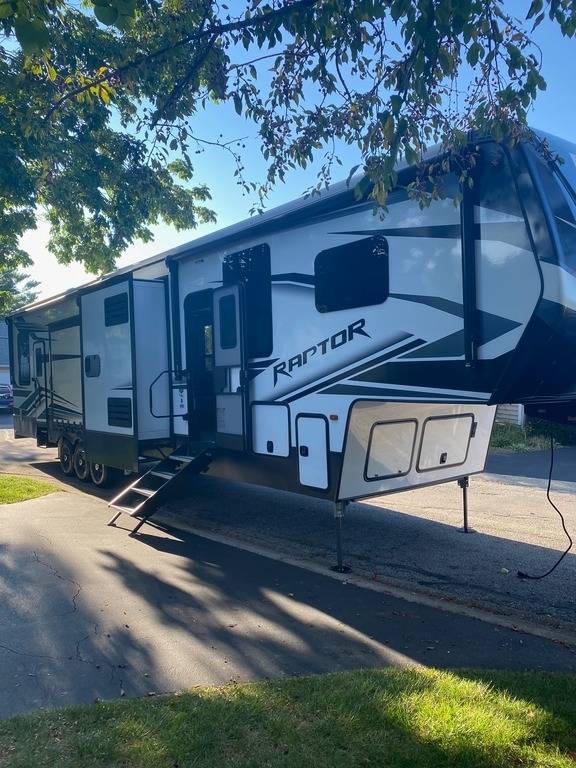 This 2021 Keystone Raptor 429 has $38,000 in Extras. It Comes Equipped with 3 Slide Outs, 3 Power Awnings, 3 A/C Units, and Plenty of Room to Sleep 7. This is a Non-Pet/Non-Smoking RV and there have Not been any Accidents or Water Damage.
