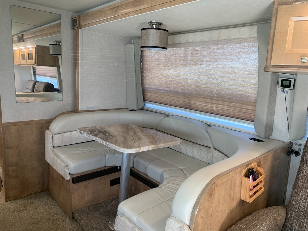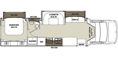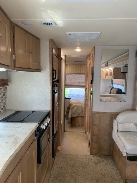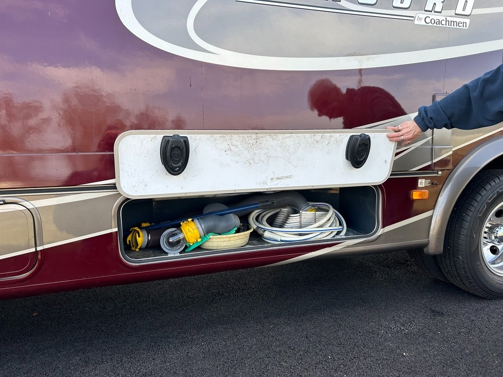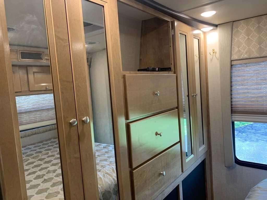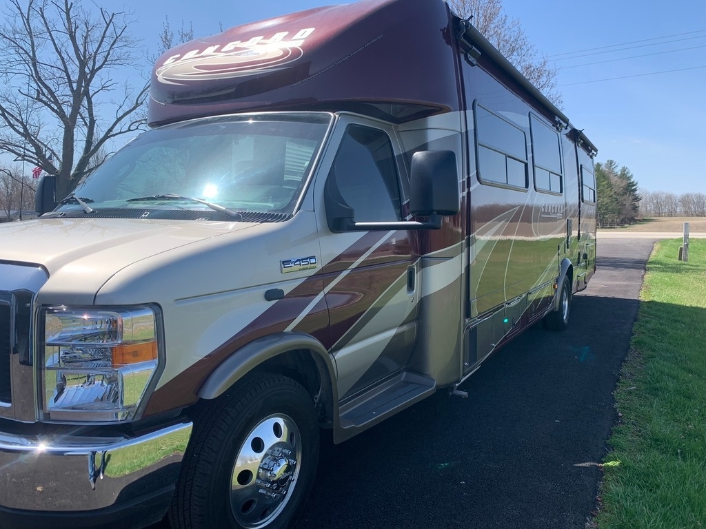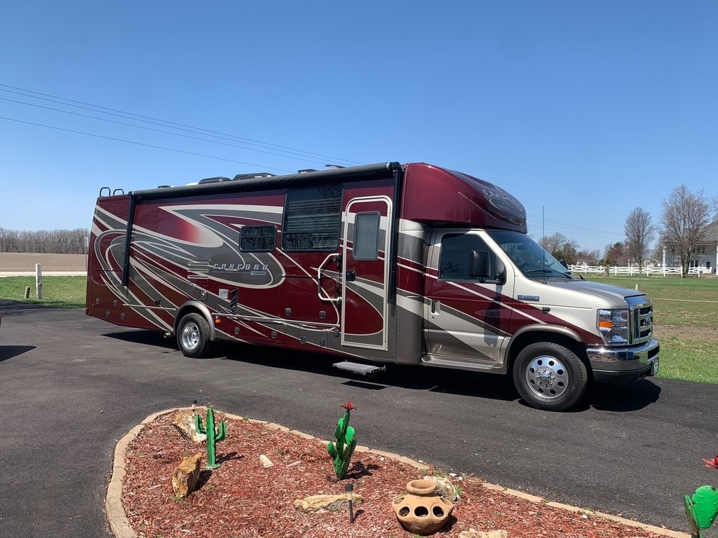 The 2019 Coachmen Concord 300DS is a Class C recreational vehicle with a length of 32.75 feet and a width of 8 feet 4 inches. It is built on a Ford E-450 chassis and has a durable fiberglass exterior. The motorhome is equipped with a Ford V10 engine that produces 305 horsepower and 420 ft lb of torque.