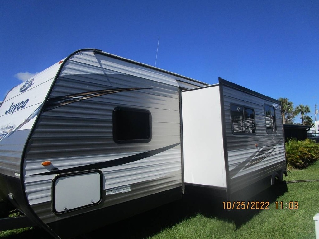 This 2020 Jayco Jay Flight SLX8 287BHSW Travel Trailer is 33.42 feet long and comes equipped with a slide out, a power patio awning, an air conditioning unit, and can sleep eight people comfortably. Rocky Mountain Edition. Comes with warranty and exterior care on siding from Camping World.