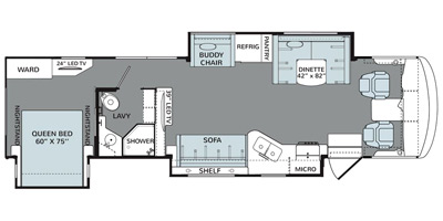 with amenities and at 36 feet sleeps 6 comfortably- load up the whole family!