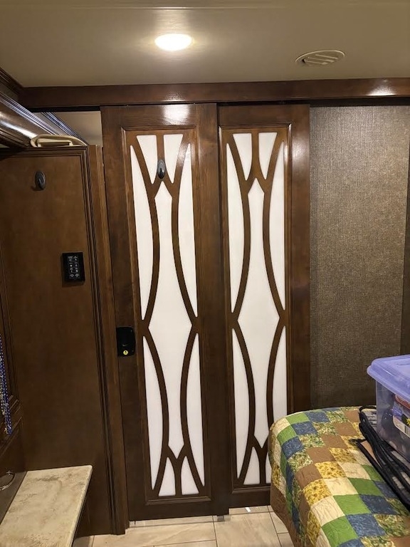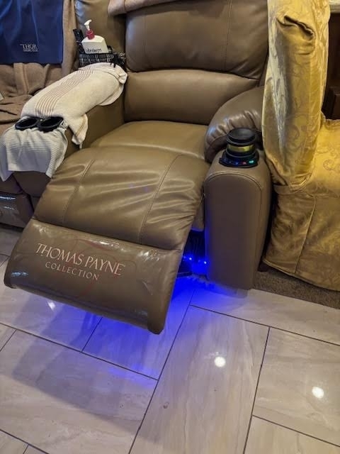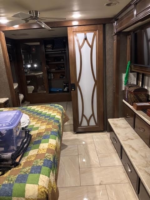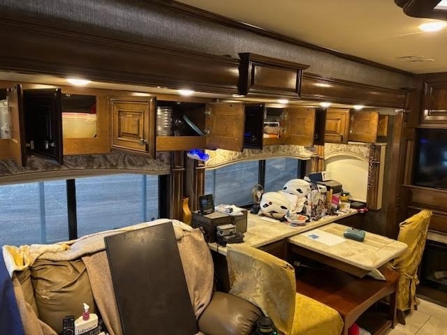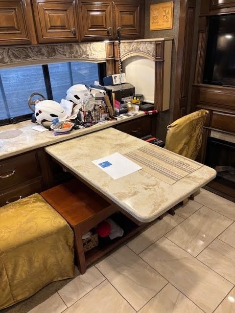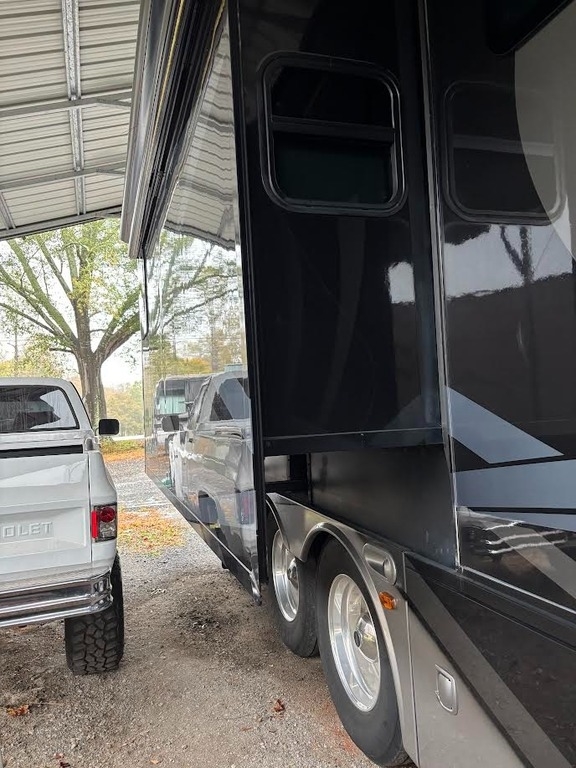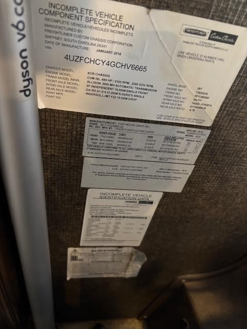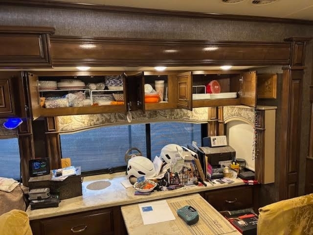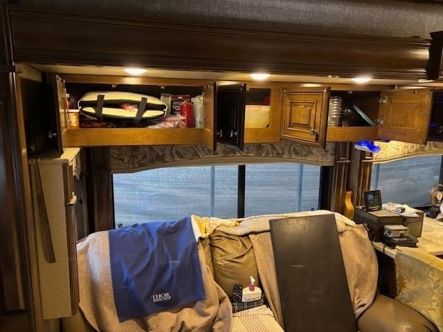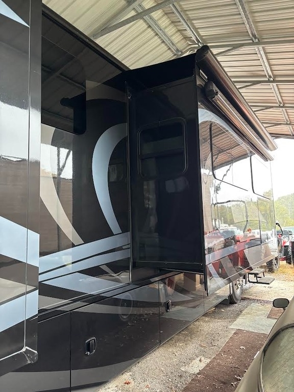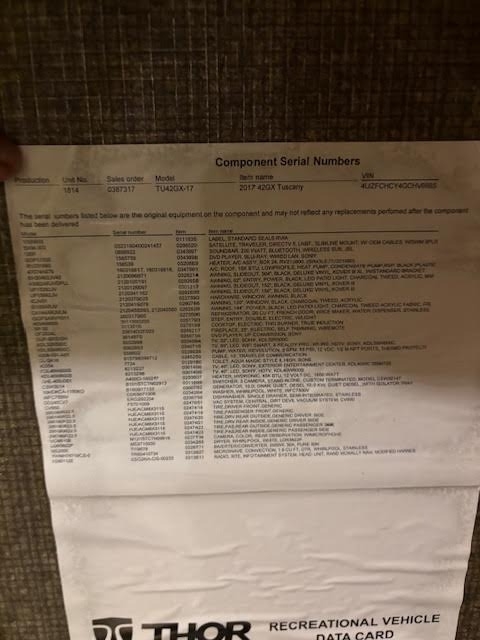 “This is a beautiful and exceptionally well-maintained 2017 Thor Motor Coach Tuscany 42GX Class A Diesel Pusher that has always been stored under shelter and kept in excellent condition. It has a brand-new cylinder head and new front tires, and the toppers over the slides were replaced about three years ago. The coach features the Aqua-Hot system and is completely all-electric, with no LP gas. The floor plan includes a bath and a half with one of the largest bathrooms you’ll ever find in an RV. The middle air conditioner is new, the front unit is newer, and the rear is original. Inside, you’ll find Whirlpool washer and dryer units, a dishwasher, a residential Whirlpool refrigerator, and four Smart TVs. The living area includes upgraded heated and massaging recliners, a fireplace, and beautiful cherrywood cabinets, along with a ceiling fan and central vacuum system.