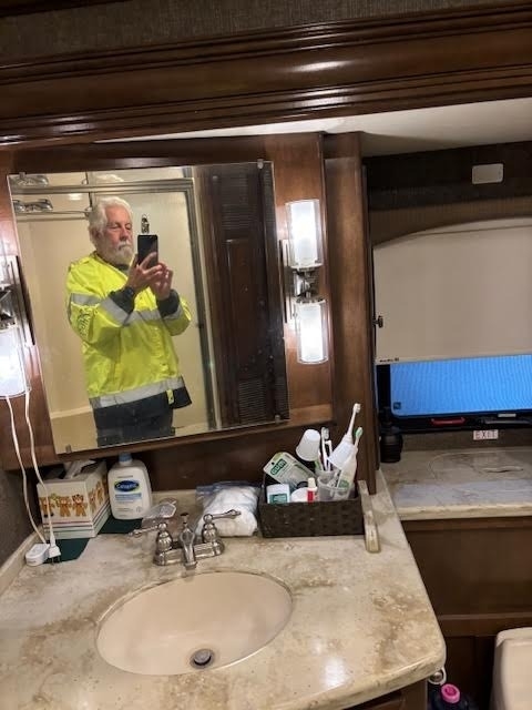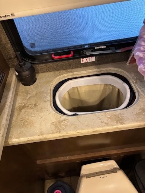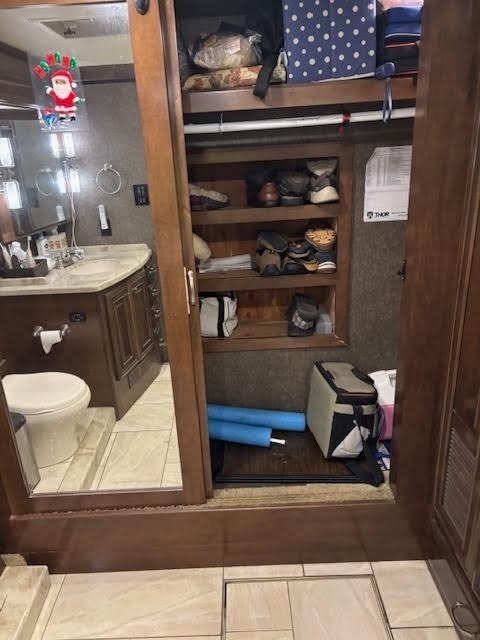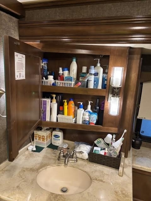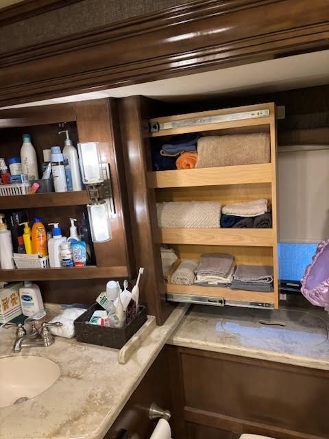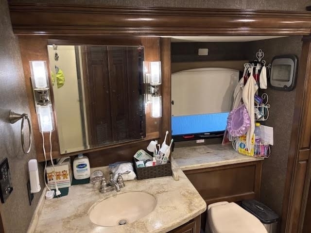 In Midship Half Bathroom: Sink & Faucet, Toilet, Mirror, Storage