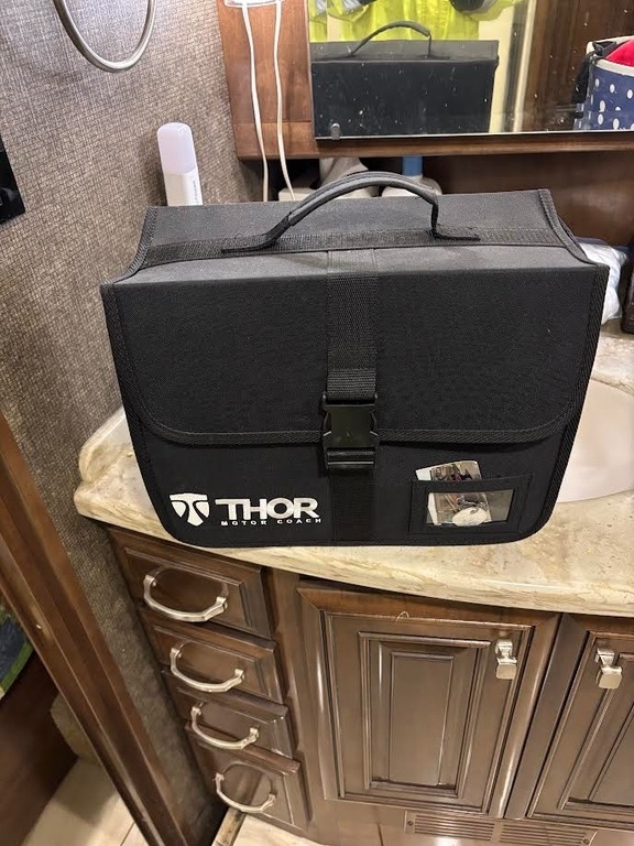 This coach is prewired for solar and comes equipped with heated tanks and mirrors, a 360-degree camera system, a 15-inch touchscreen dash, and a Multiplex wiring control system. It also features a wider entry door than other Thor models and two slide-out trays in the basement for added storage convenience. All fabric and upholstery are in good condition, and the house batteries have been upgraded to large AGM units. The satellite dish is currently inoperable.