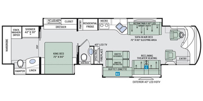 This all-electric Tuscany is powered by a 8.9L Cummins engine and an Allison 6-speed automatic transmission with 52,000 miles. The overall length is 43 feet and it comes equipped with 3 power retractable slide-outs, 2 power retractable awnings, 3 A/C units, 1.5 bathrooms, a generator, solar prep, and plenty of room to sleep 4. This unit has been well-maintained.
