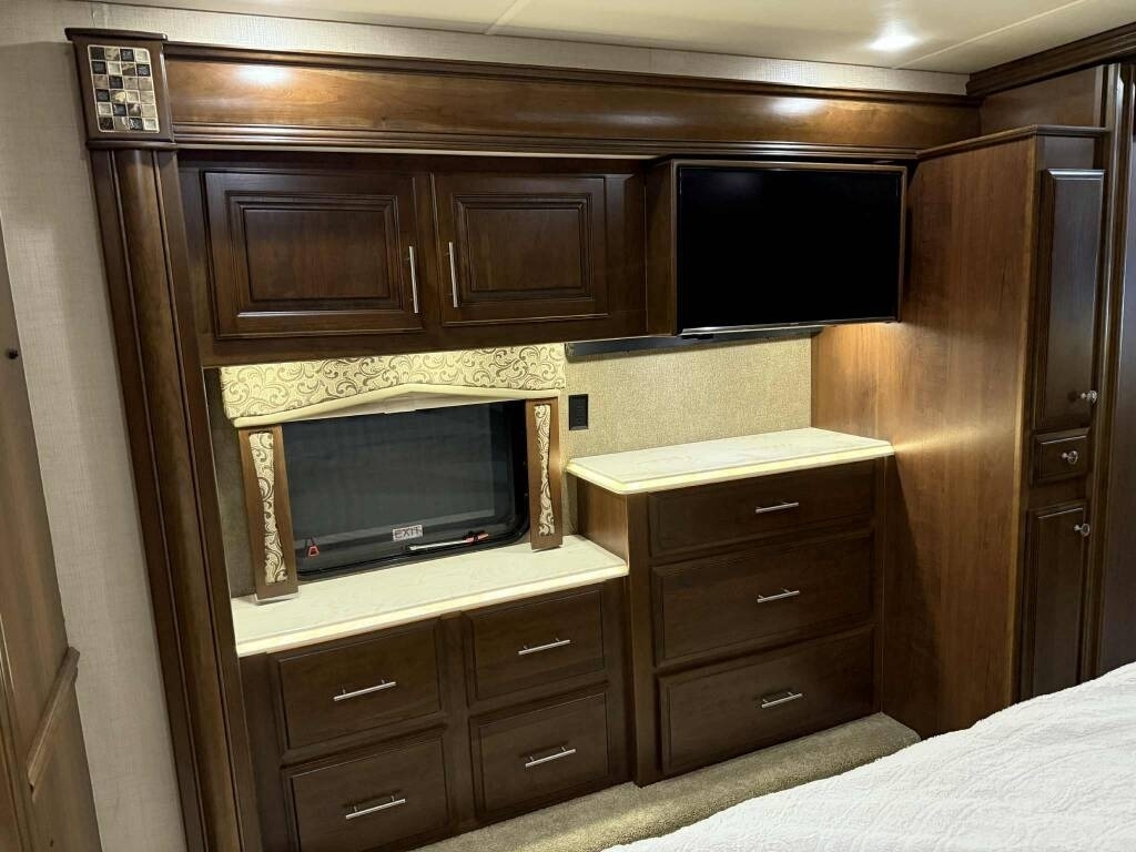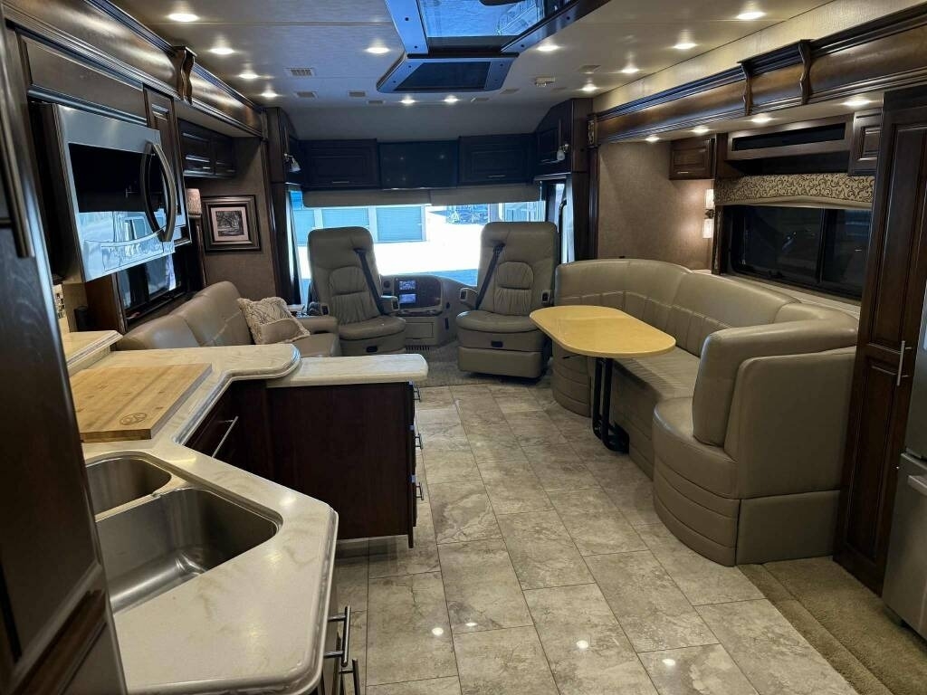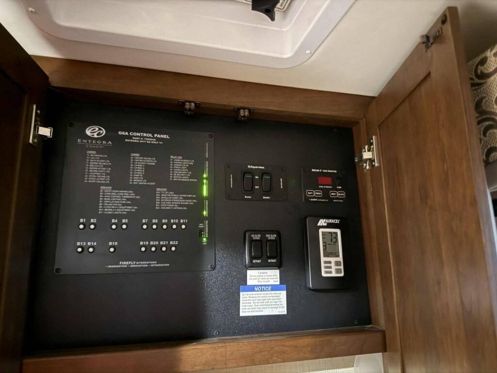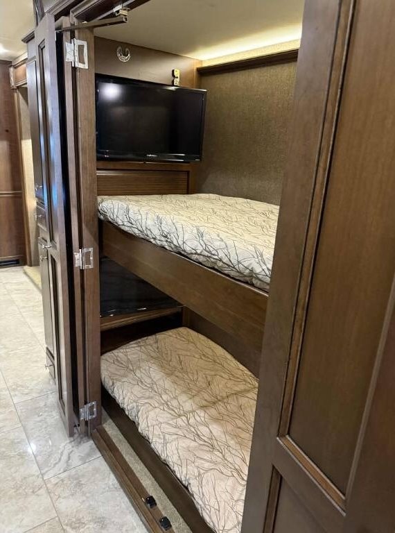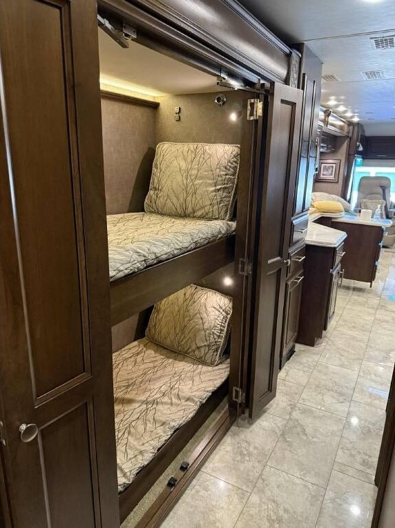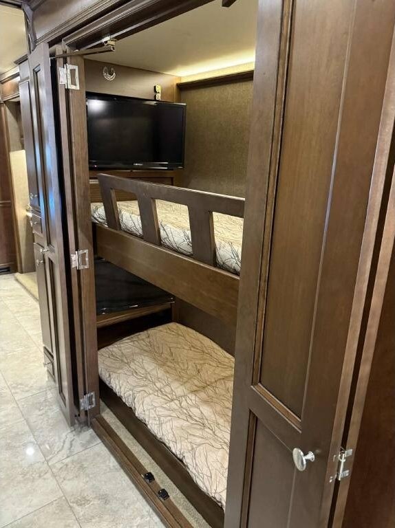 “For sale is our 2017 Entegra Coach Aspire 44R, a luxury Class A diesel pusher featuring the highly desirable bunkhouse floorplan with a bath and a half layout. Powered by a Cummins ISL engine with air brakes and paired with an Allison automatic transmission, this coach has 61,392 miles and has been meticulously maintained by the original owner, with full maintenance records available. This coach is loaded with upgrades, including a factory-installed Winegard Trav'ler satellite system, Wi-Fi Ranger, EZRV tire pressure monitoring system, Air Force One braking system, and battery tender. It also features 6 total TVs—including two in the bunks and one exterior TV—3 AC units with heat pumps, a dishwasher drawer, and a slide-out storage tray. The front Michelin tires (steers) are 4 years old, and the tag tires are newer BF Goodrich tires, with a date code of March 2025. Two Toyo tires on the drive axle. Additional touches like an extra pocket door, second patio awning, and painted slide-out sides add both function and flair. The versatile bunk area includes storage and under-bunk cabinetry ideal for gear or even rifle storage. Sleeping arrangements include a king master bed and a blow-up couch bed, comfortably accommodating up to 6. Used only occasionally and never lived in full-time, this Aspire is in very good to excellent condition inside and out. With an original MSRP of $424,651, this well-appointed coach offers top-tier luxury, performance, and value—and it's turn-key ready for the next adventure.”