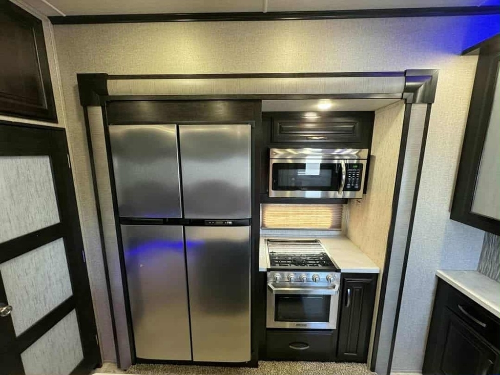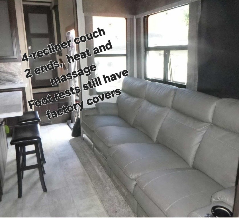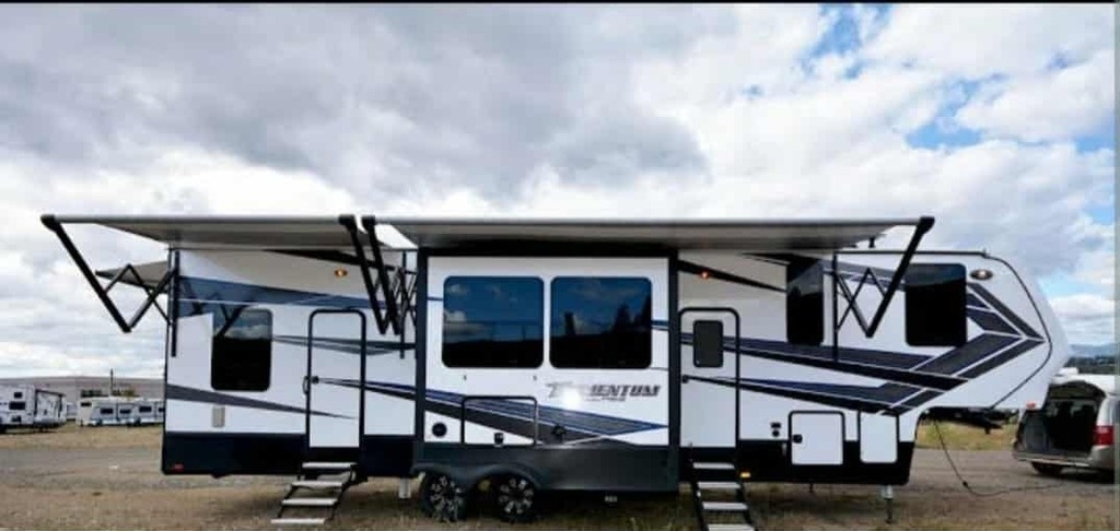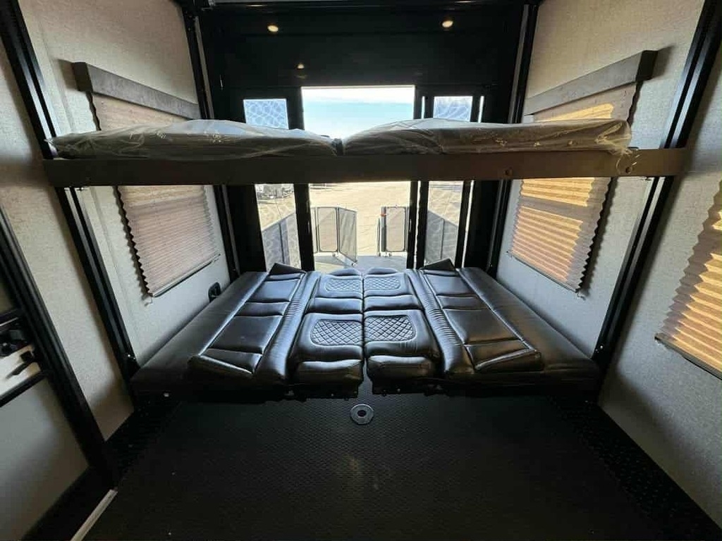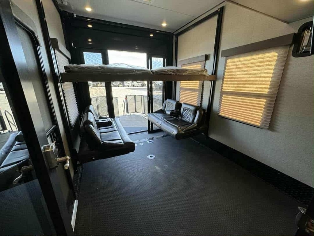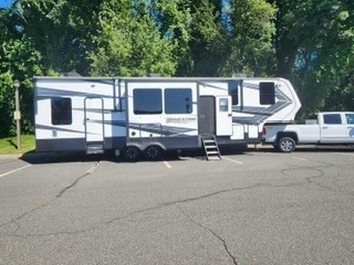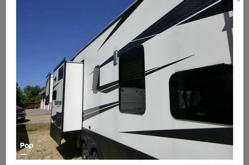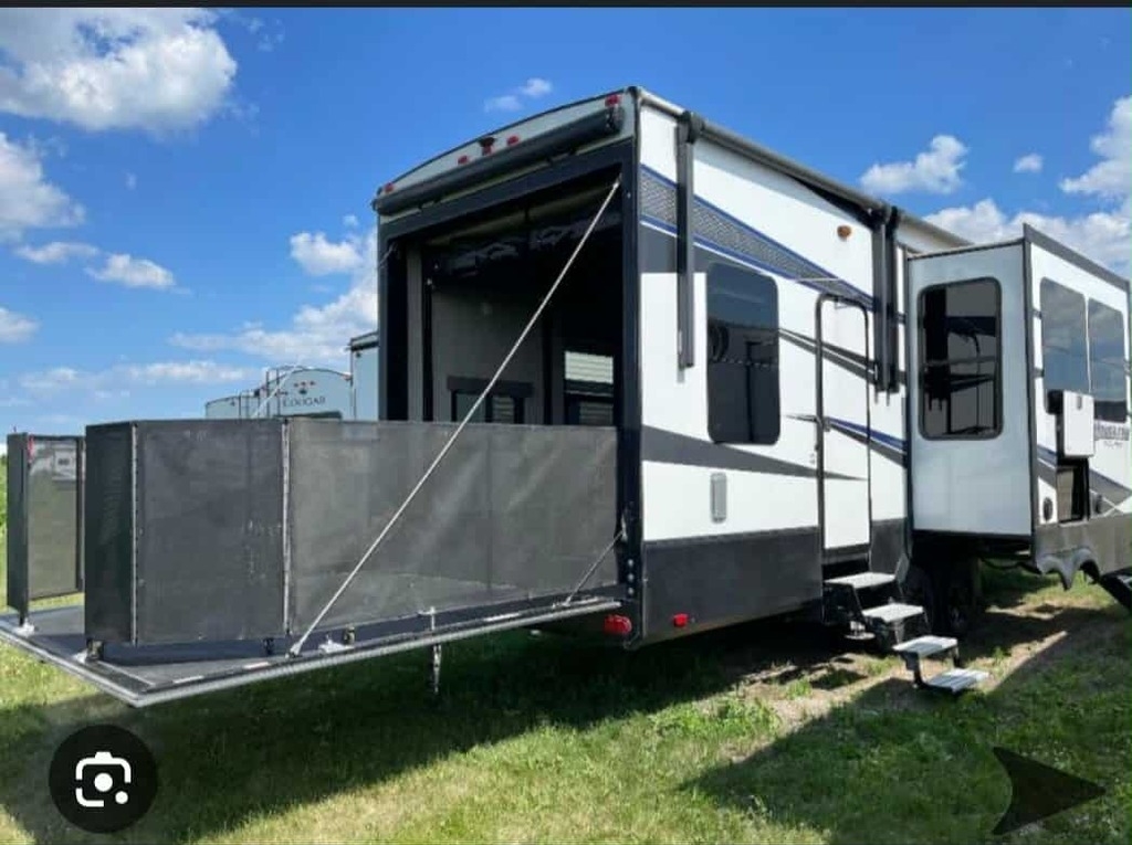 This Toy Hauler has an overall length of 38.75’ and comes equipped with 3 power retractable slide-outs, 1 power retractable awning, a generator, solar panels, an 11’ garage, and plenty of room to sleep 9. This unit has been well-maintained.