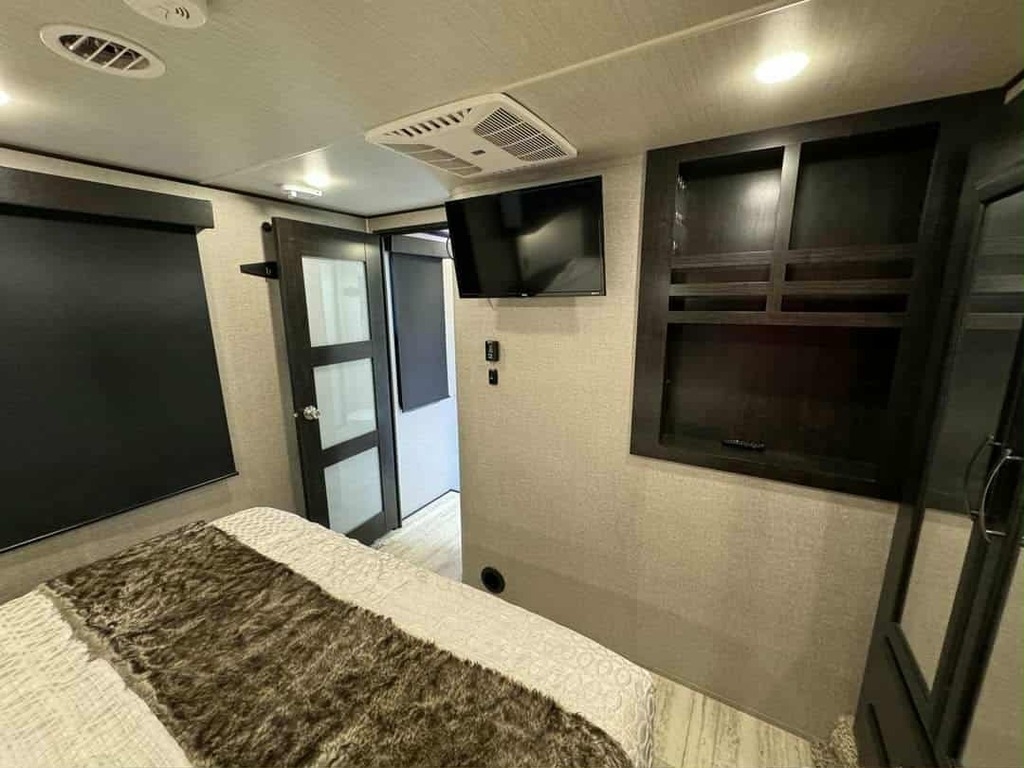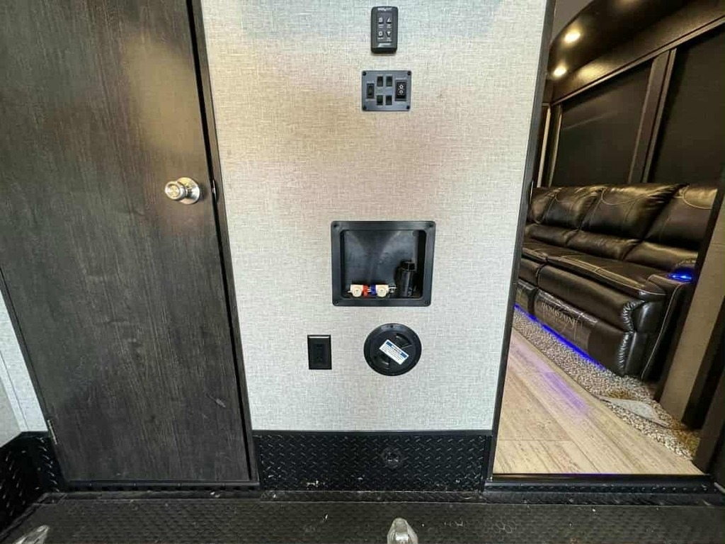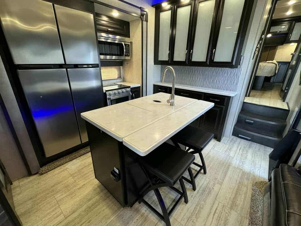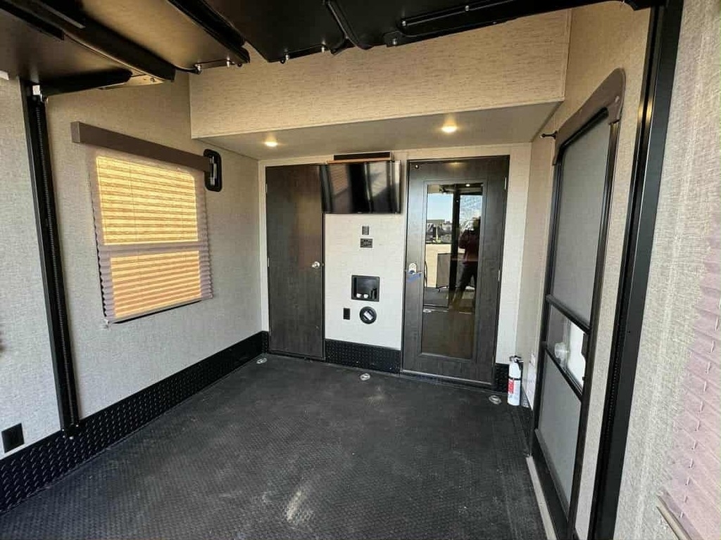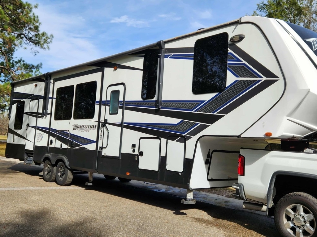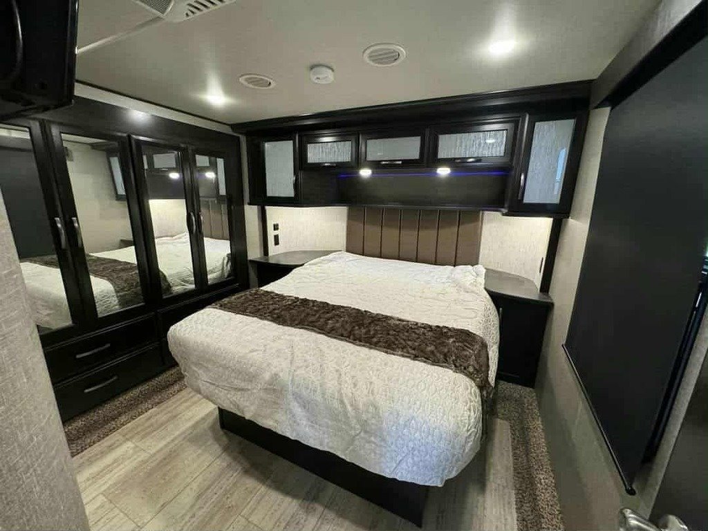 This Toy Hauler has an overall length of 38.75’ and comes equipped with 3 power retractable slide-outs, 1 power retractable awning, a generator, solar panels, an 11’ garage, and plenty of room to sleep 9. This unit has been well-maintained.