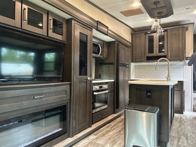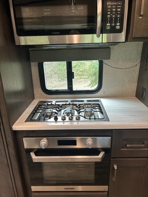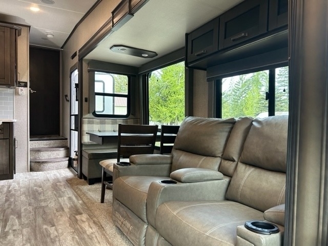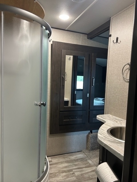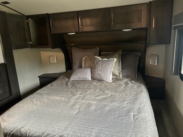 This Grand Design has a overall length of 32ft and it comes equipped with 3 Slide Outs, 2 Power Awnings, 2 A/C Units, Auto Leveling System, RV Cover with Wheel Covers and Room to Sleep 4.