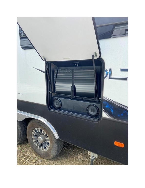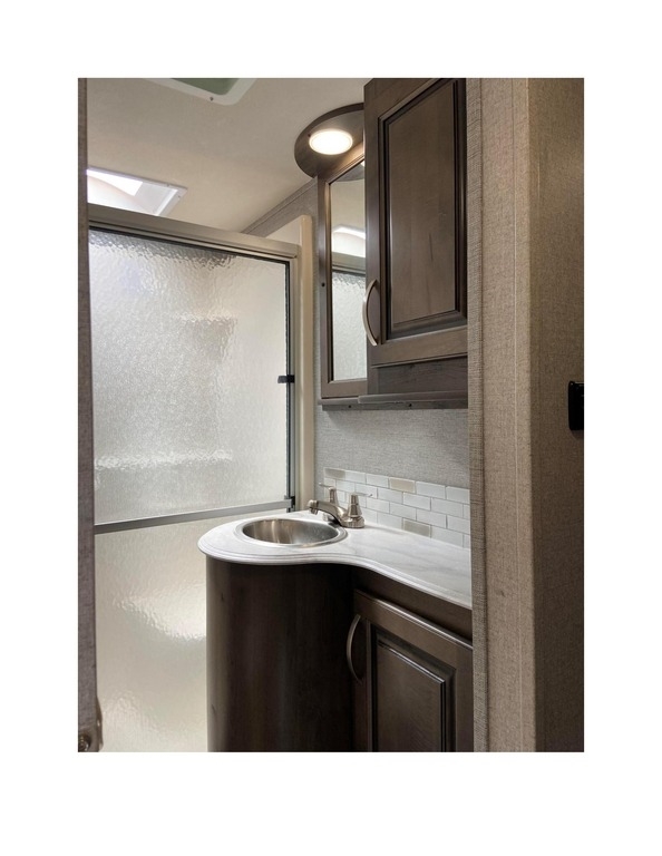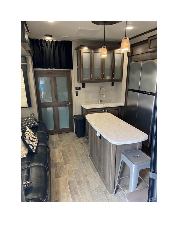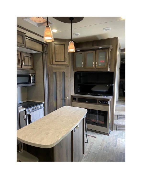 This ’18 Dutchman has an overall length of 39.33 feet, 12’ Garage and comes equipped with an Onan 5.5KW Generator, 3 Slide Outs, 3 Awnings, 2 A/C units and plenty of room to sleep 8.