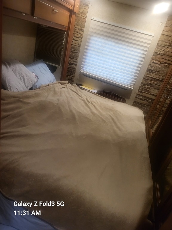 “This vehicle has been well-maintained, with tires that are only two years old, a new awning, and a new microwave. The roof is in good shape, ensuring durability, and it has been owned for five years. Additionally, it features full pass-through storage.”