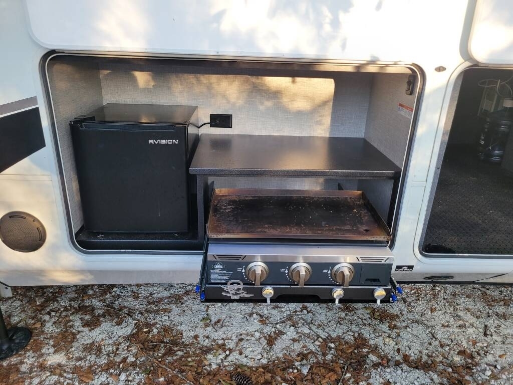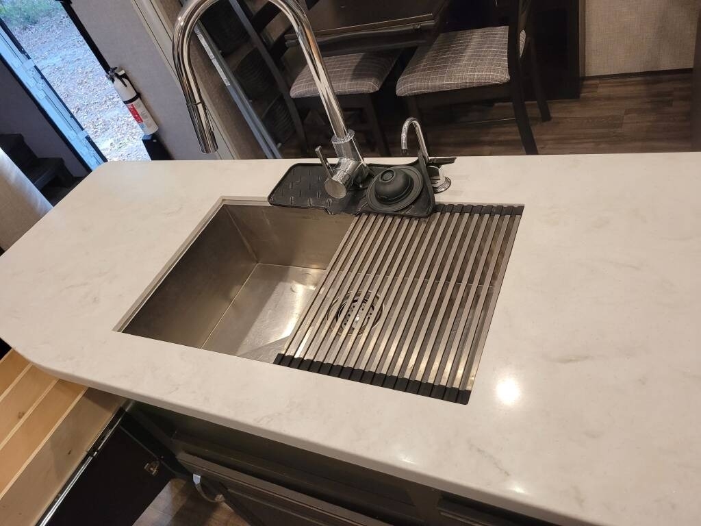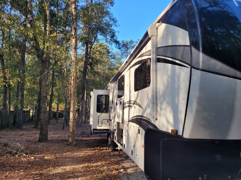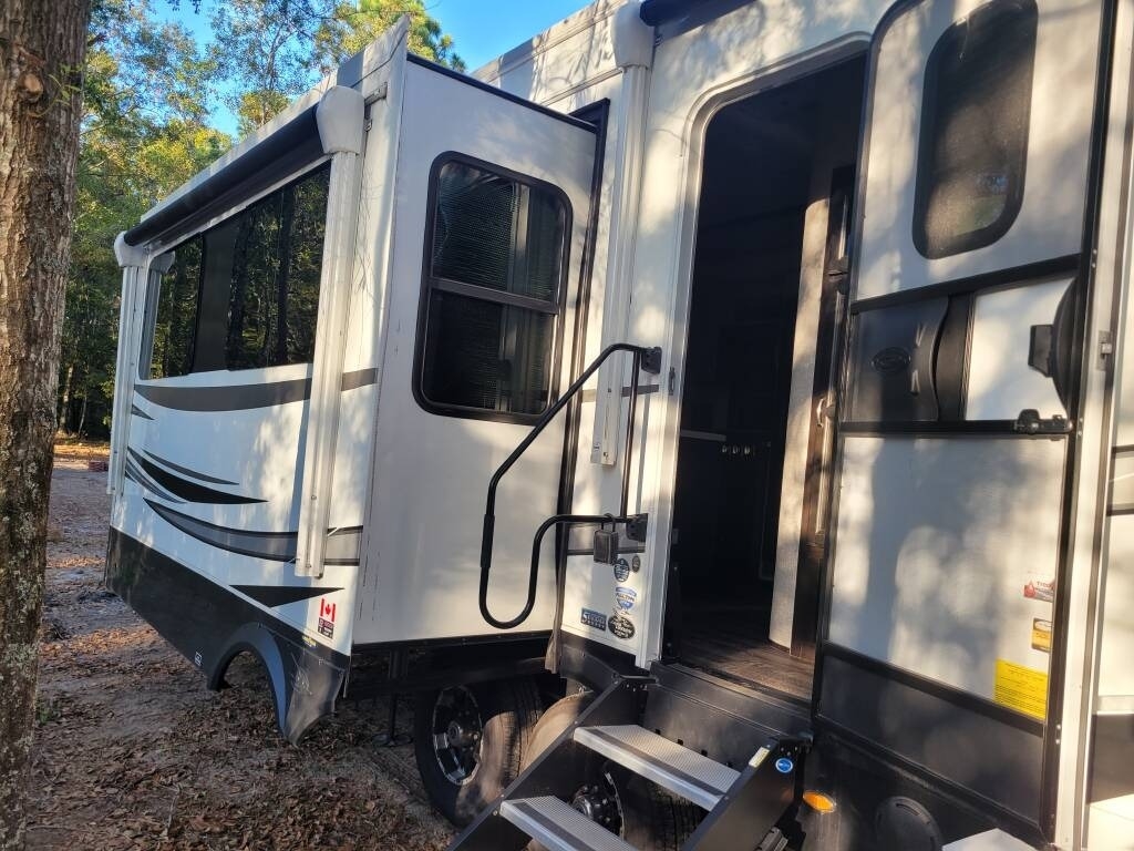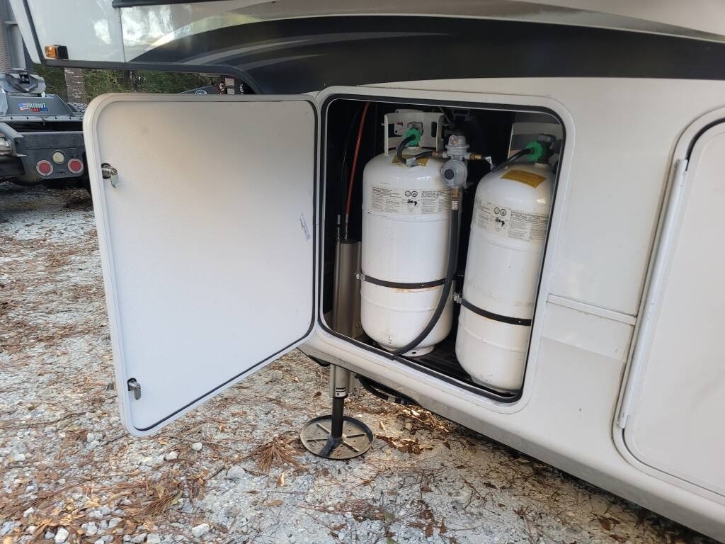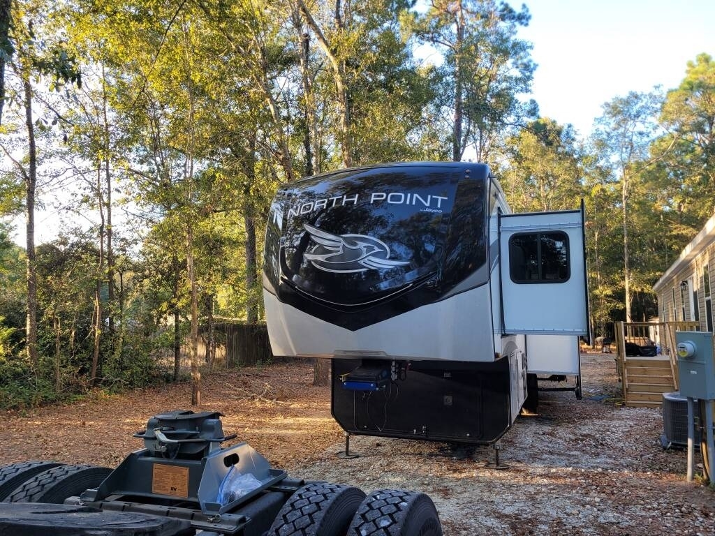 This North Point has an overall length of 43 feet and comes equipped with 4 power retractable slide-outs, 2 power retractable awnings, A/C, a fireplace, an outdoor kitchen, and plenty of room to sleep 9. This unit has been non-smoking, pet-free, and well-maintained.