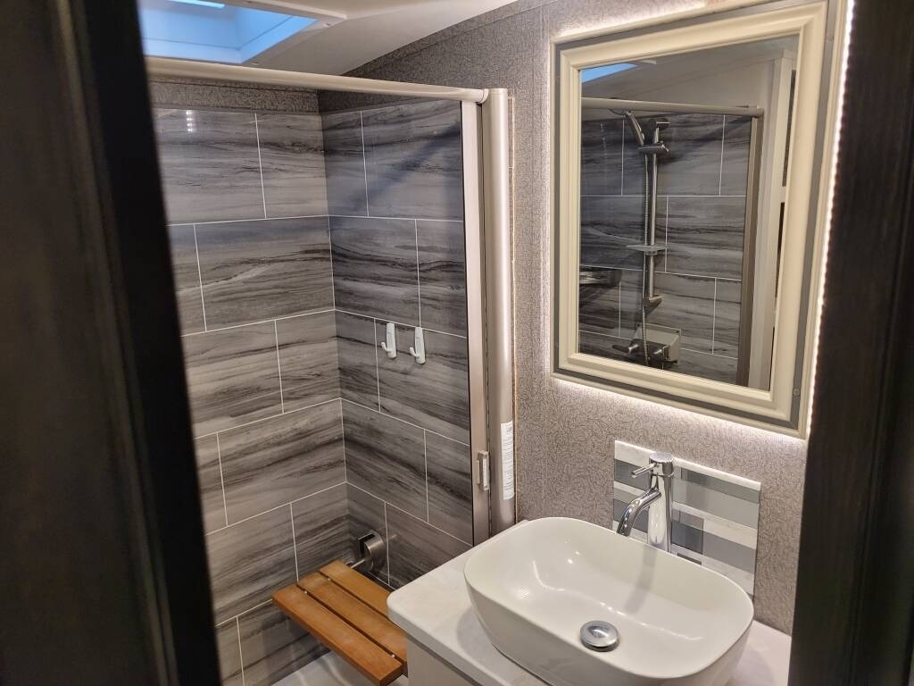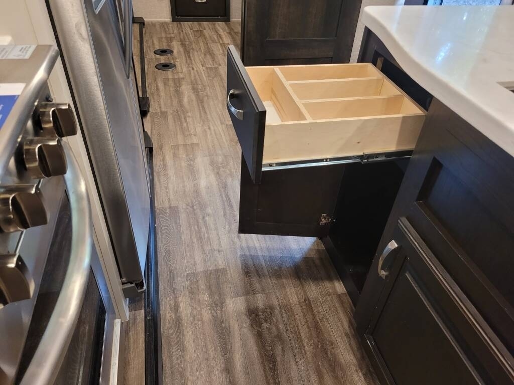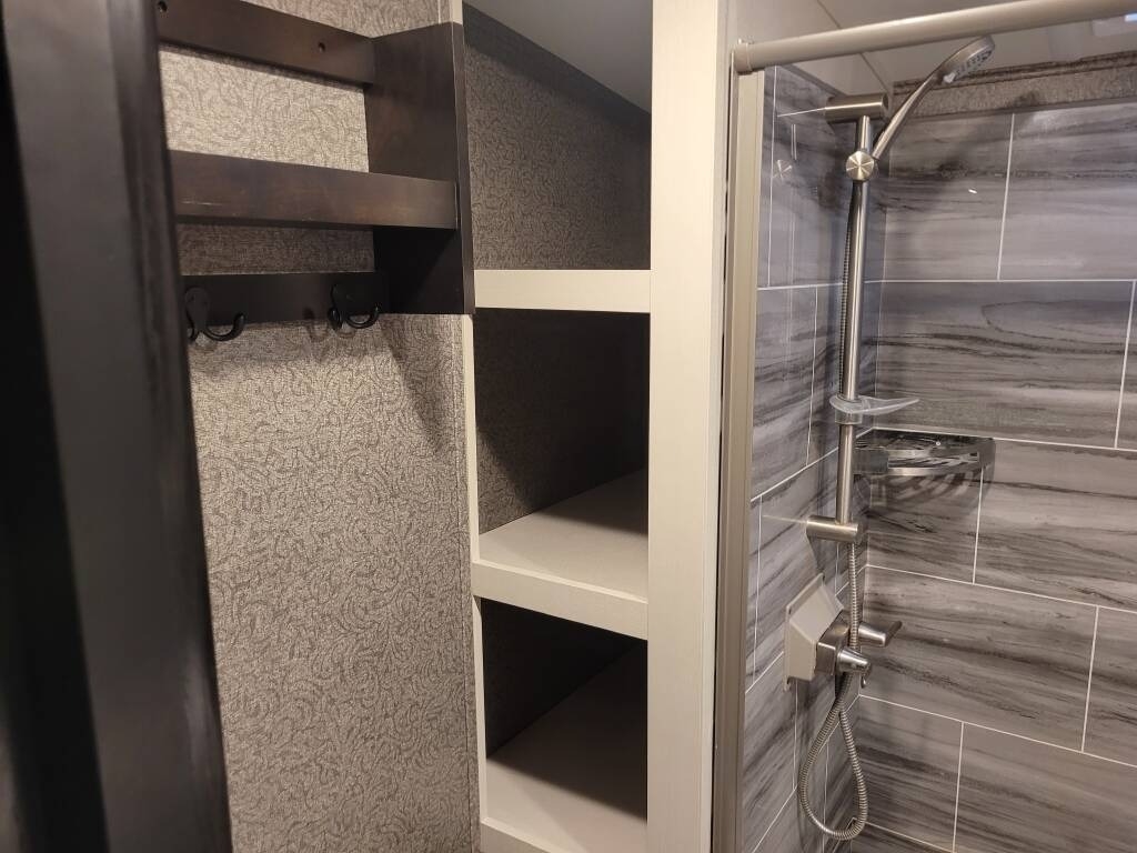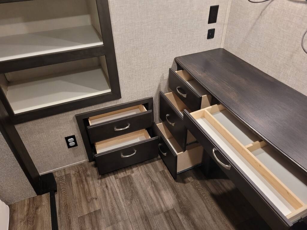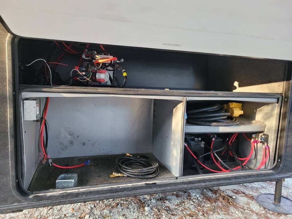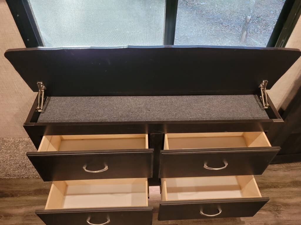 This North Point has an overall length of 43 feet and comes equipped with 4 power retractable slide-outs, 2 power retractable awnings, A/C, a fireplace, an outdoor kitchen, and plenty of room to sleep 9. This unit has been non-smoking, pet-free, and well-maintained.