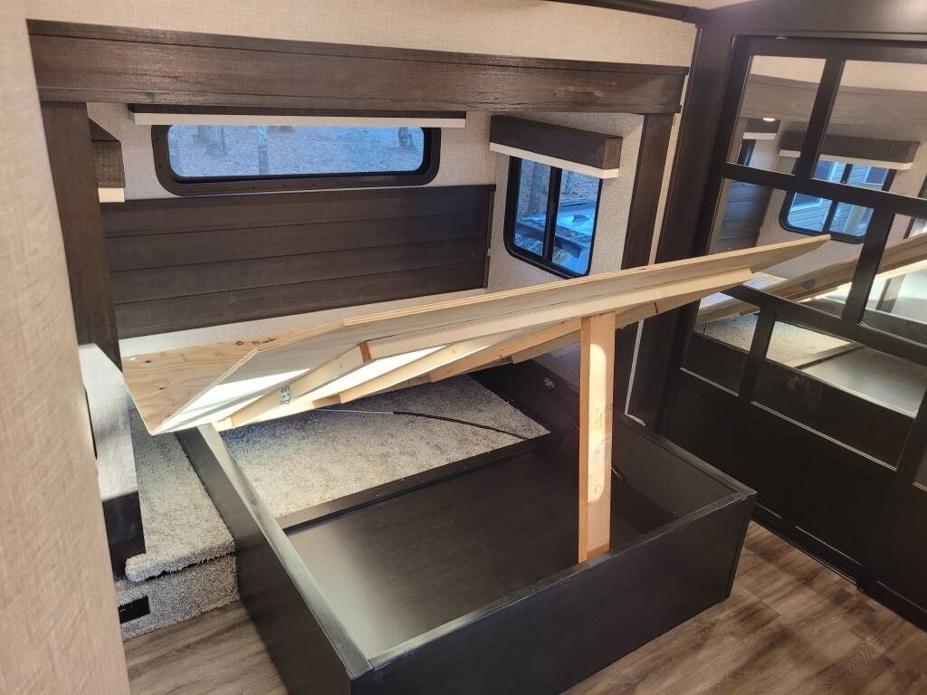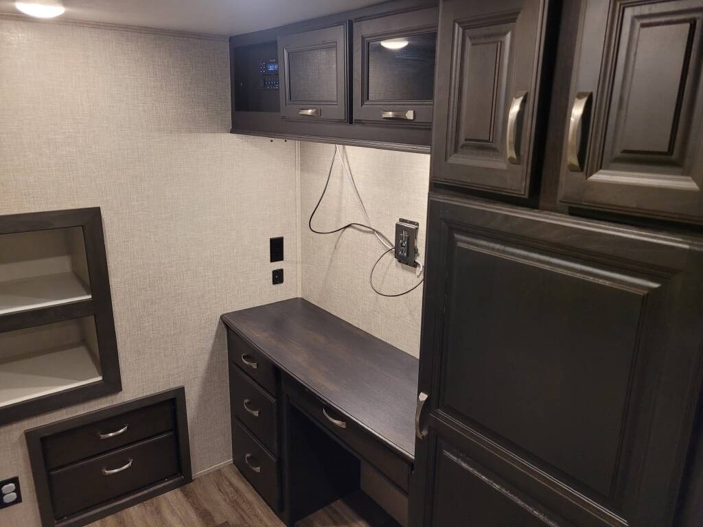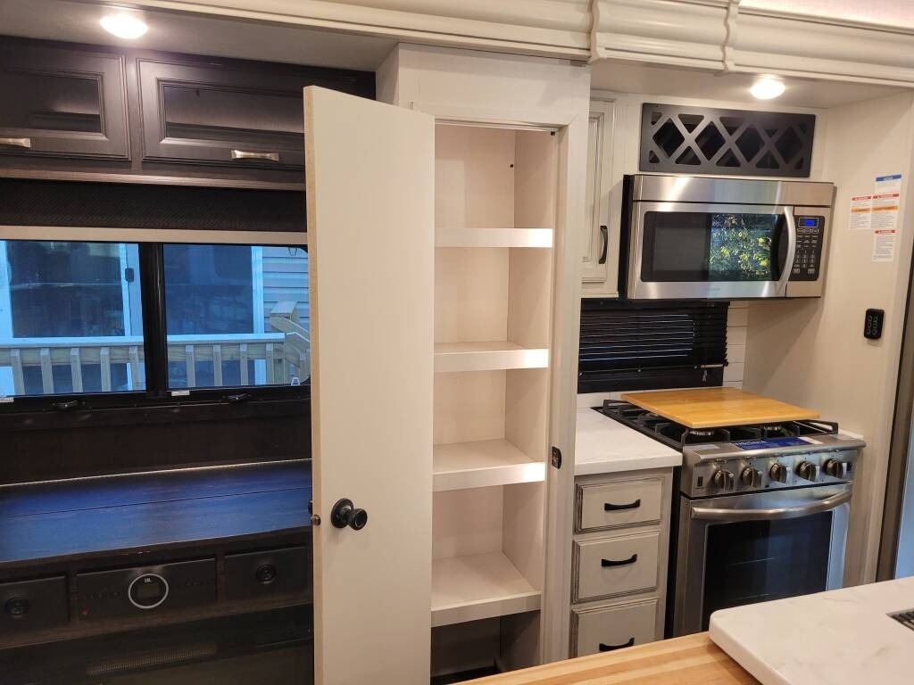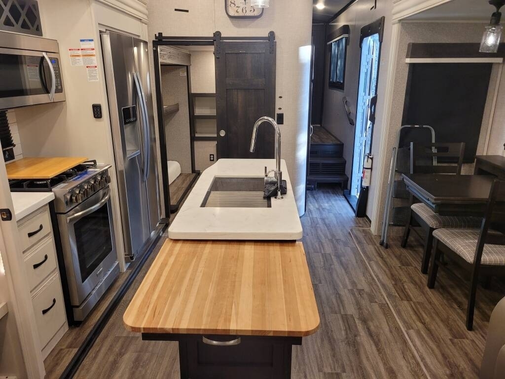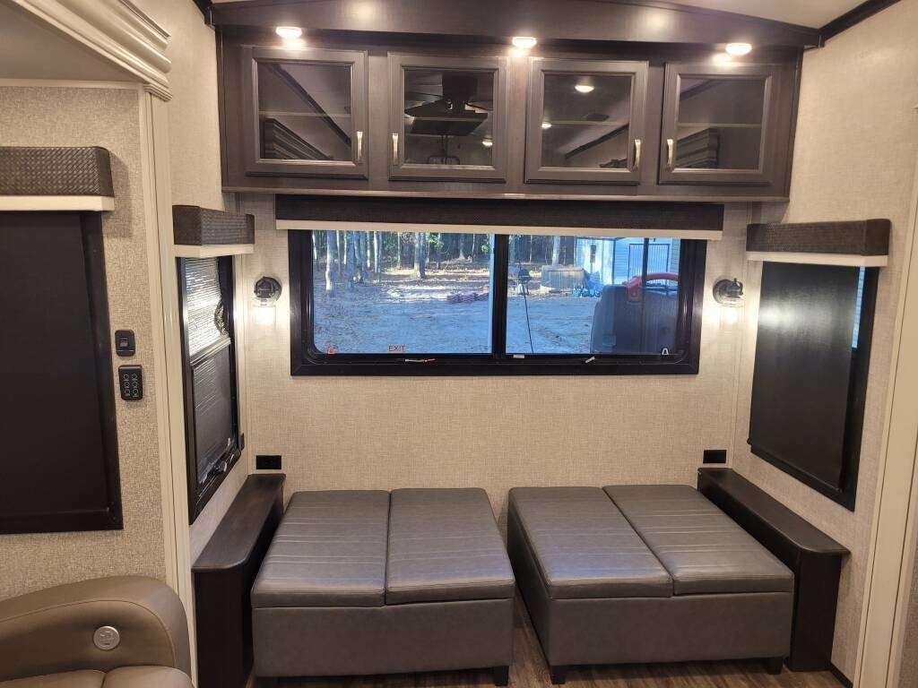 “This stunning 2022 Jayco North Point 377RLBH Fifth Wheel is in like-new condition and ready for its next adventure, as it has barely been used and is looking for new owners. With four spacious slides, this unit offers a generous living area for ultimate comfort. The well-equipped kitchen features a residential refrigerator/freezer, a large pantry, stove, oven, microwave, and a kitchen island, making it perfect for preparing meals on the road. The main living area boasts an entertainment center with a pop-up TV and fireplace, theater seating, and a sofa. Additionally, there is a versatile bonus room with a desk, TV, and a flip-up bunk, ideal for work or relaxation. The large bathroom provides ample space, while the main bedroom offers plenty of storage and a king bed (mattress not included) for a restful night's sleep. The fifth wheel hitch is included, so you don’t have to worry about purchasing one. Plus, this unit comes with a transferrable extended warranty, ensuring peace of mind for the new owner. This North Point 377RLBH is ready to hit the road and provide years of enjoyment.”