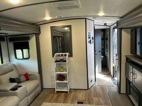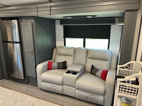 equipped with 2 power retractable slide-outs, a 19-foot power retractable