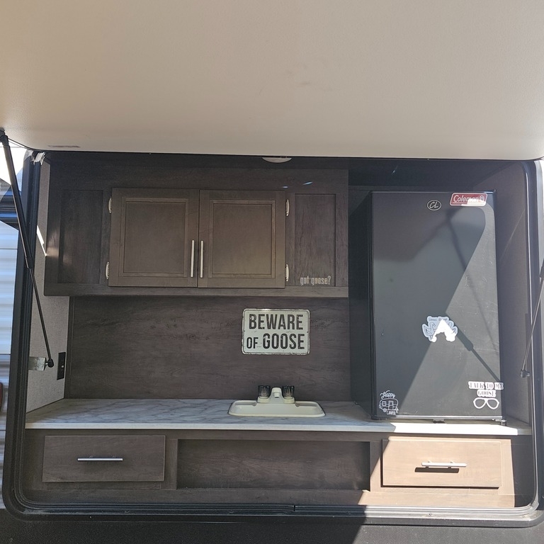 This Coleman has an overall length of 37.92 feet and comes equipped with a bunkhouse, 3 power retractable slide-outs, 1 power retractable awning with lighting, solar prep, 1 A/C unit, an outdoor kitchen, a bunkhouse, and plenty of room to sleep 9. This unit has been well-maintained.