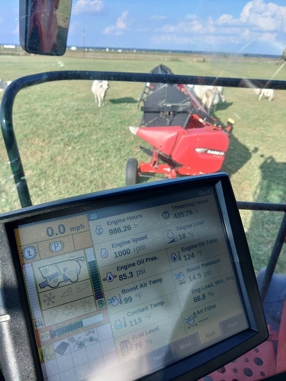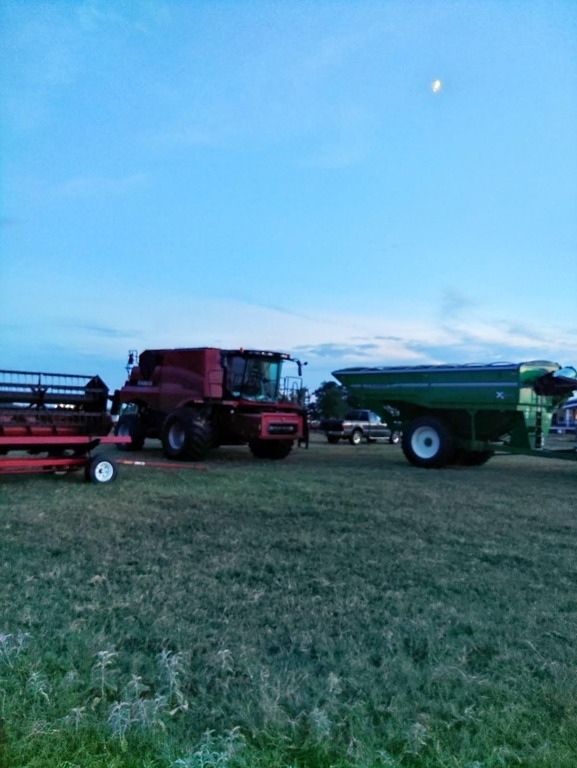 the combine, header, header trailer, grain cart, and a 1,000-gallon skid tank