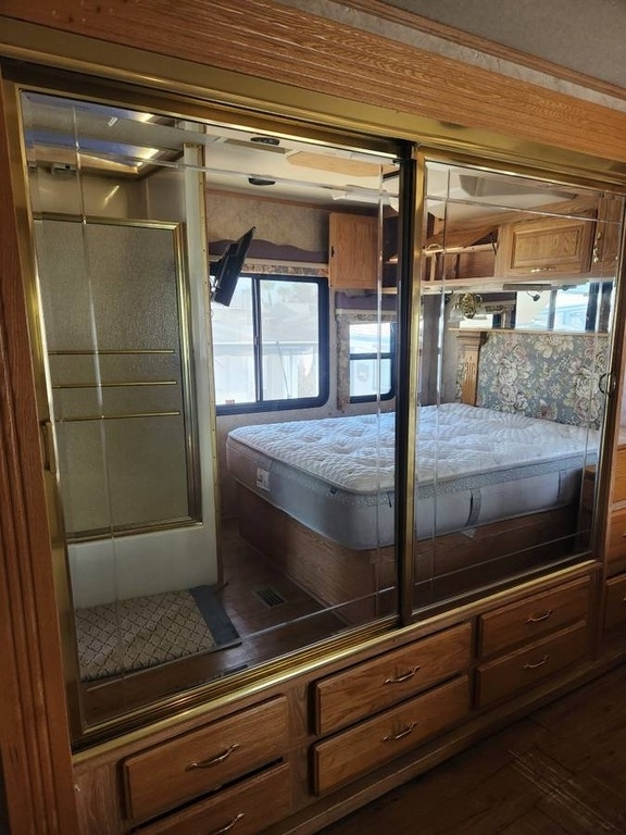 This  Alfa is powered by a Cat 330 Diesel Engine paired with an Allison automatic  Transmission with only 141,332 Miles. The overall length is 40 ft and it comes equipped  with 7.5K Diesel Generator, 2 Slide Outs, 1 Awning 3 AC Units and Room to Sleep  5.