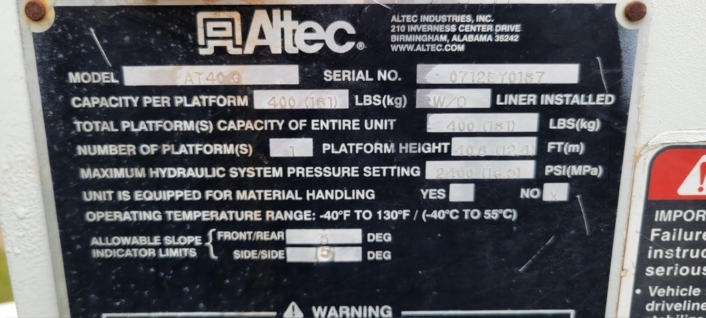 AT40G boom has 4,506 hours, a 45-foot working height, continuous rotation, and