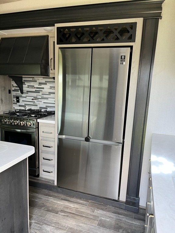 living or extended trips, featuring a residential refrigerator with ice maker,