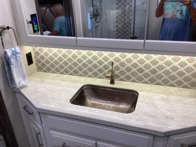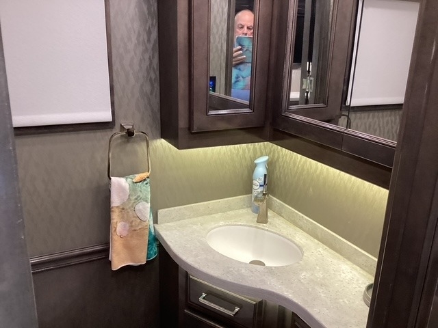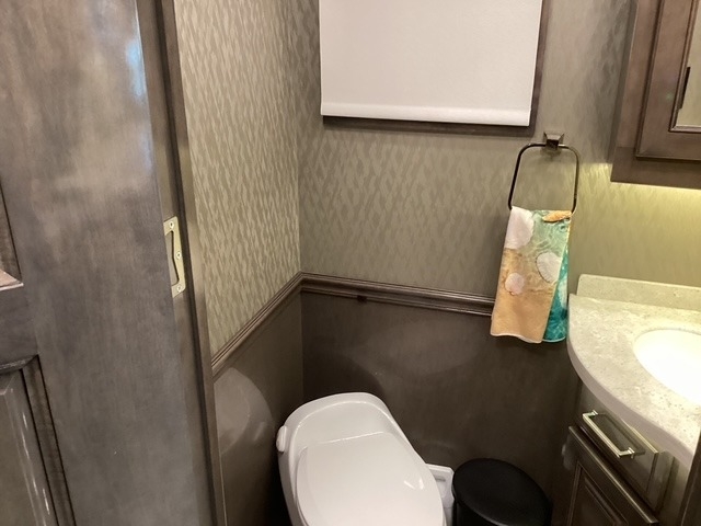In Midship Half Bathroom: Sink & Faucet, Toilet, Mirror, Storage