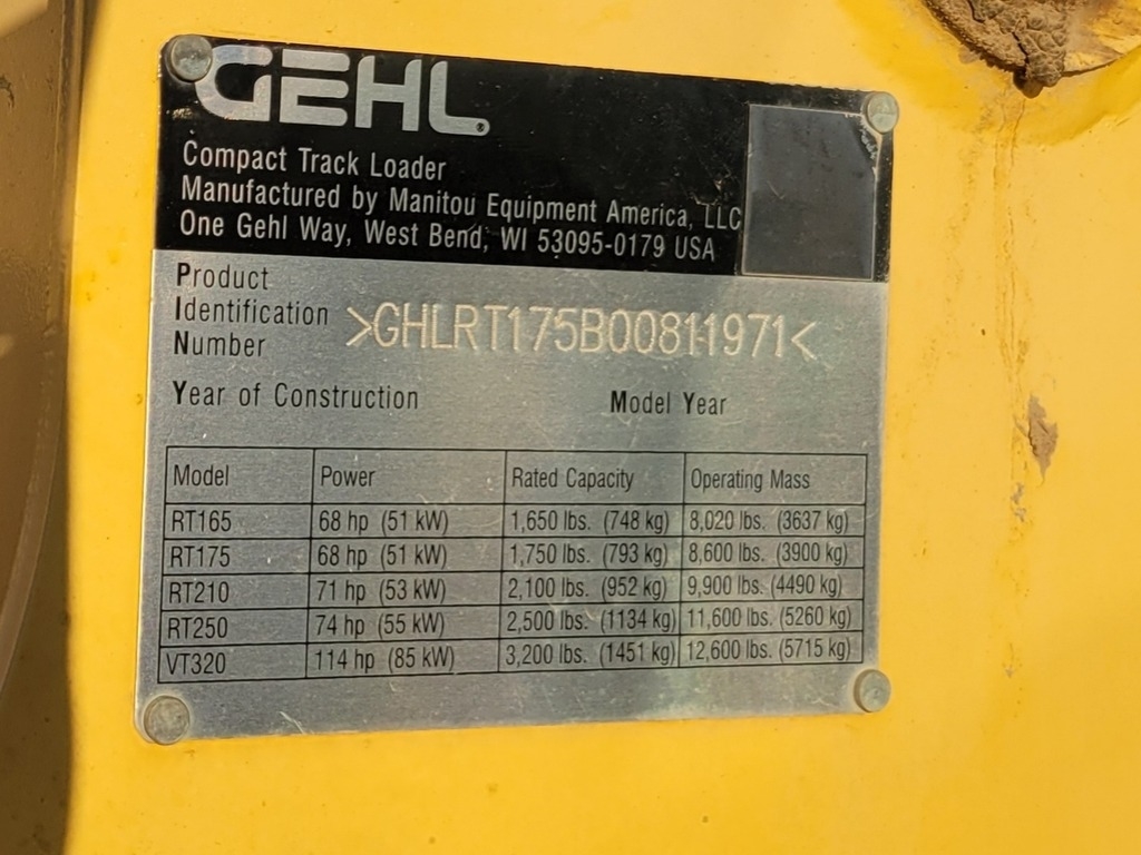 2019 Gehl RT175 Track Skid Steer is a well-working machine with low hours and