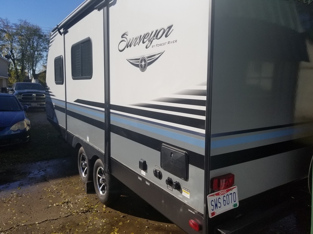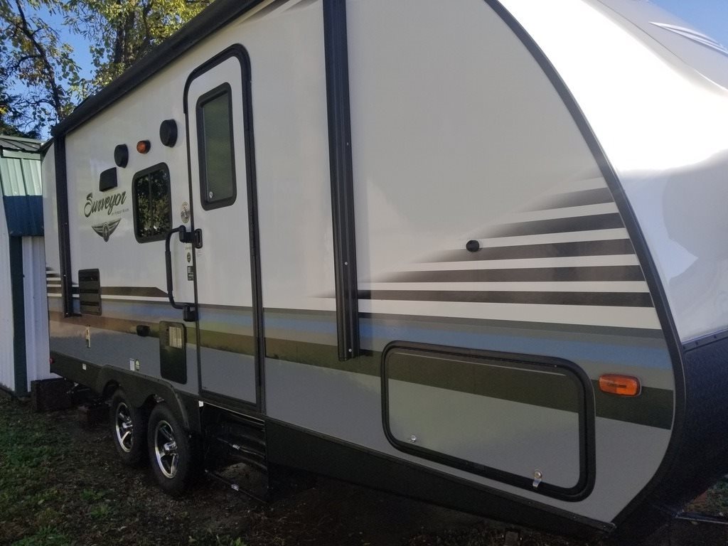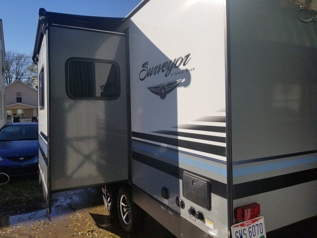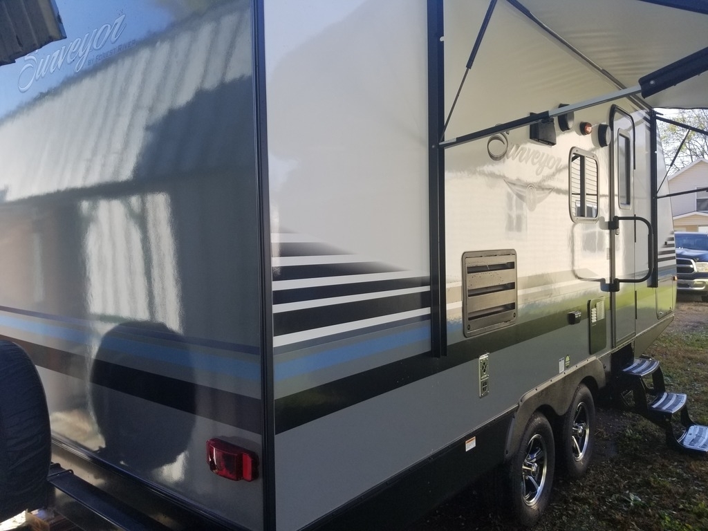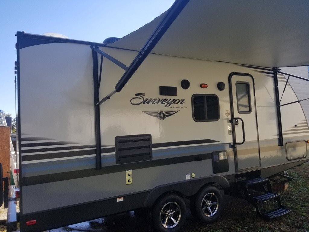 This 2018 Forest River Surveyor is 23 feet and comes with a Fold Out Murphy Bed, has 1 Slide Out and sleeps 4. This is a non-pet/non-smoking RV and there has not been any accidents or water damage.