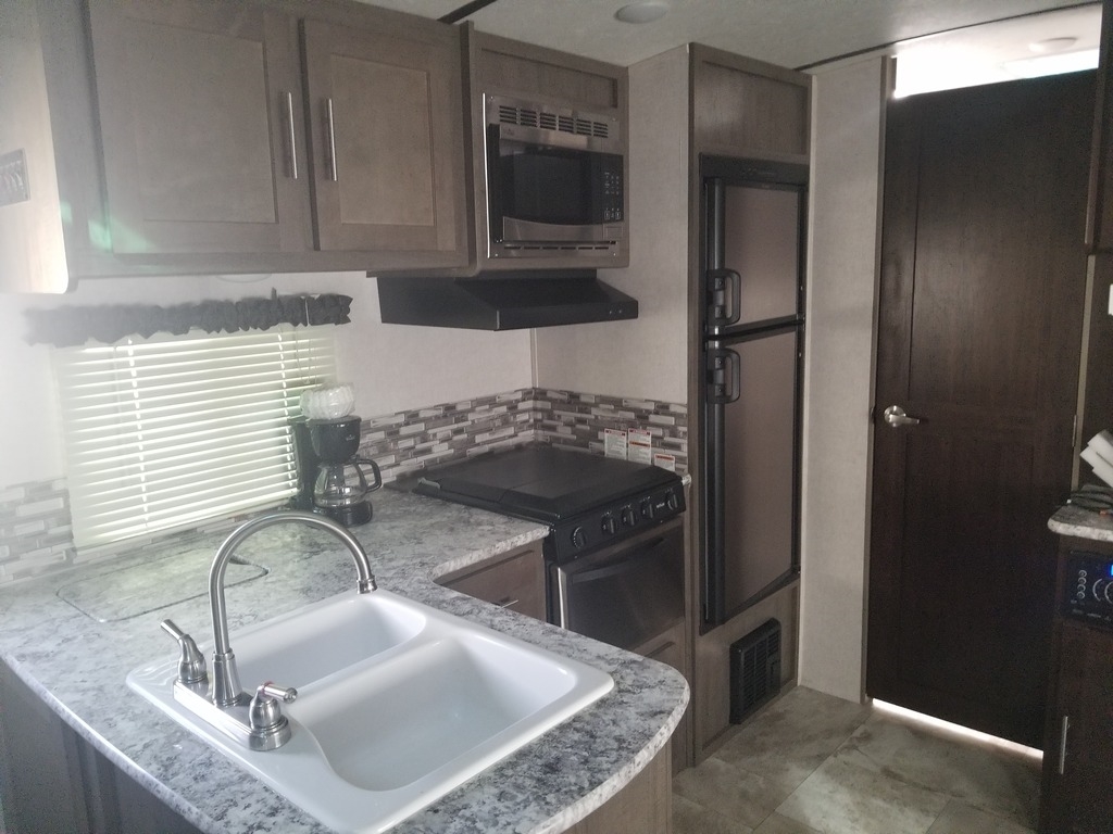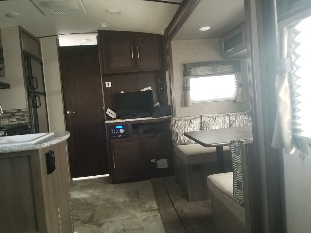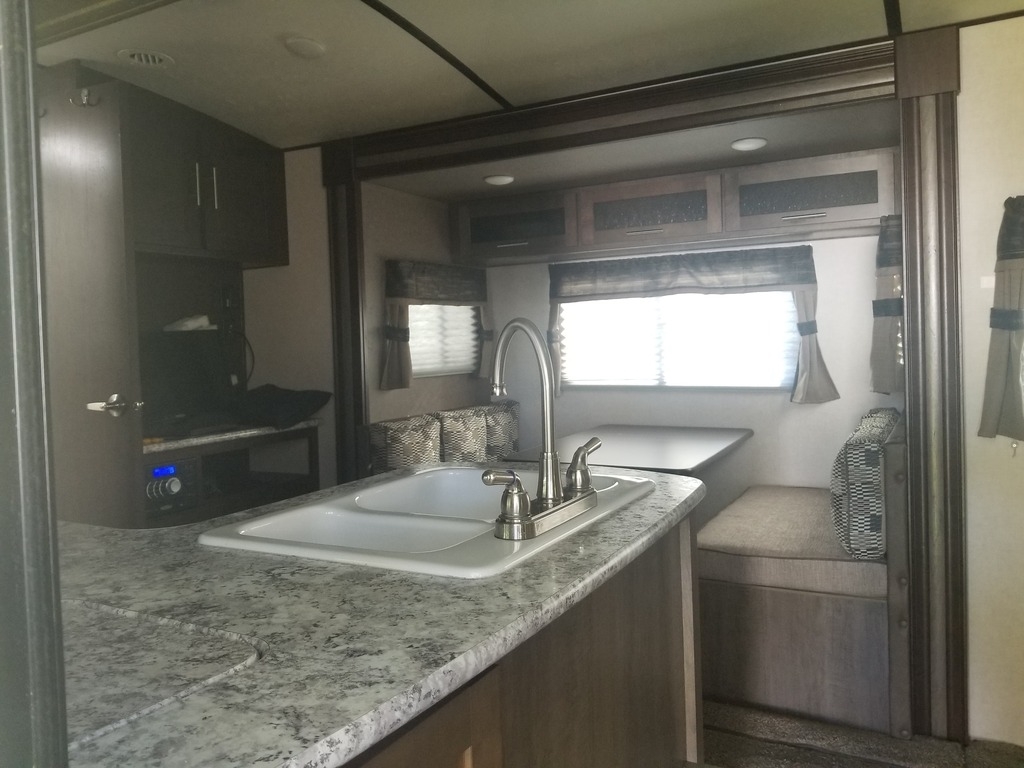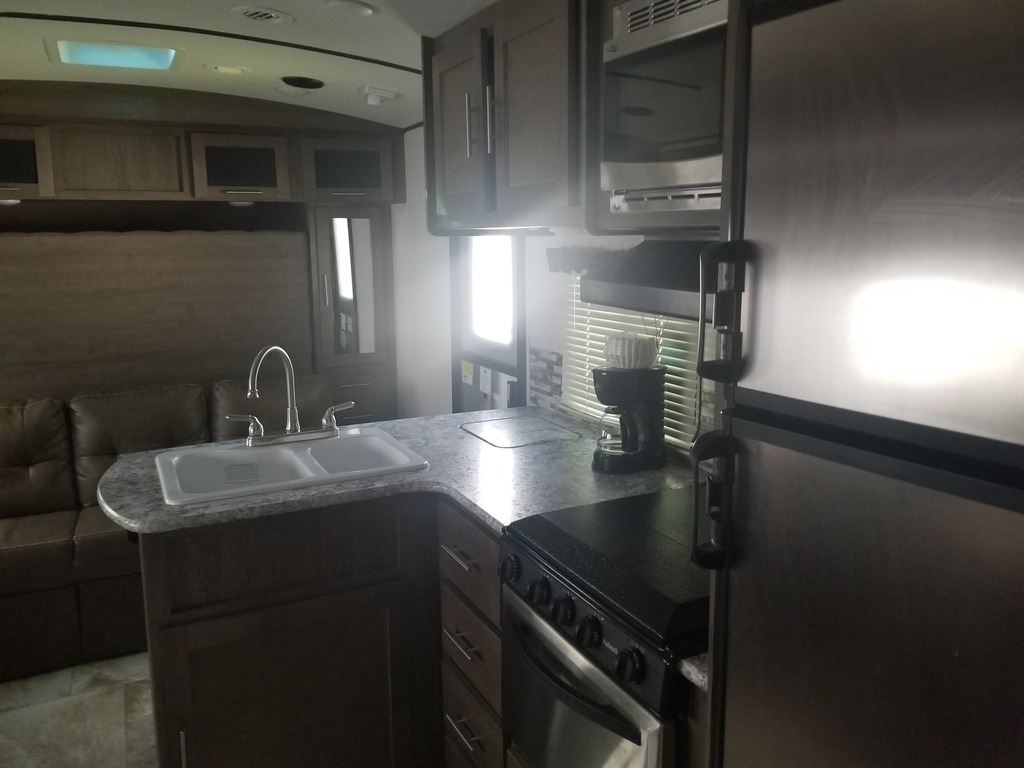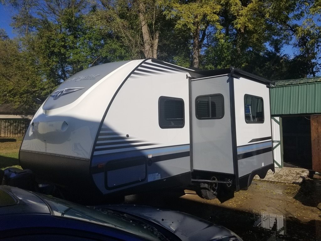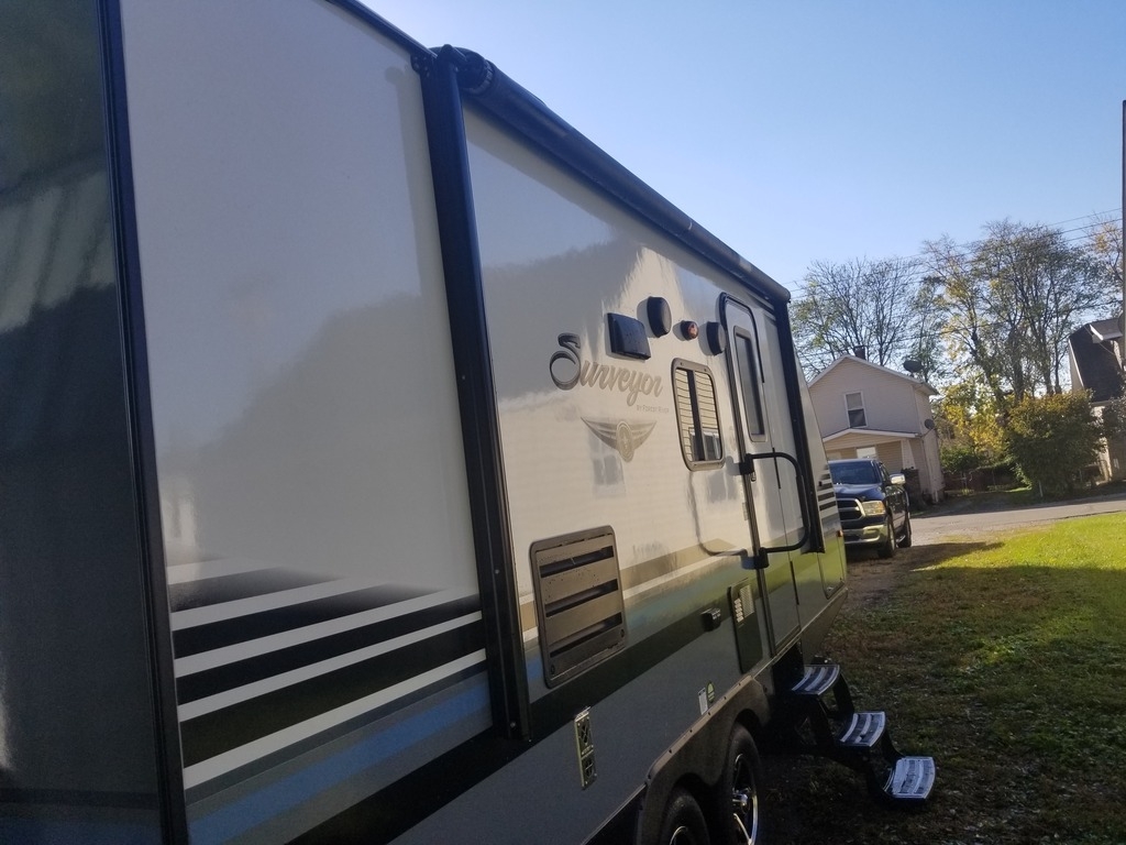 This 2018 Forest River Surveyor is 23 feet and comes with a Fold Out Murphy Bed, has 1 Slide Out and sleeps 4. This is a non-pet/non-smoking RV and there has not been any accidents or water damage.