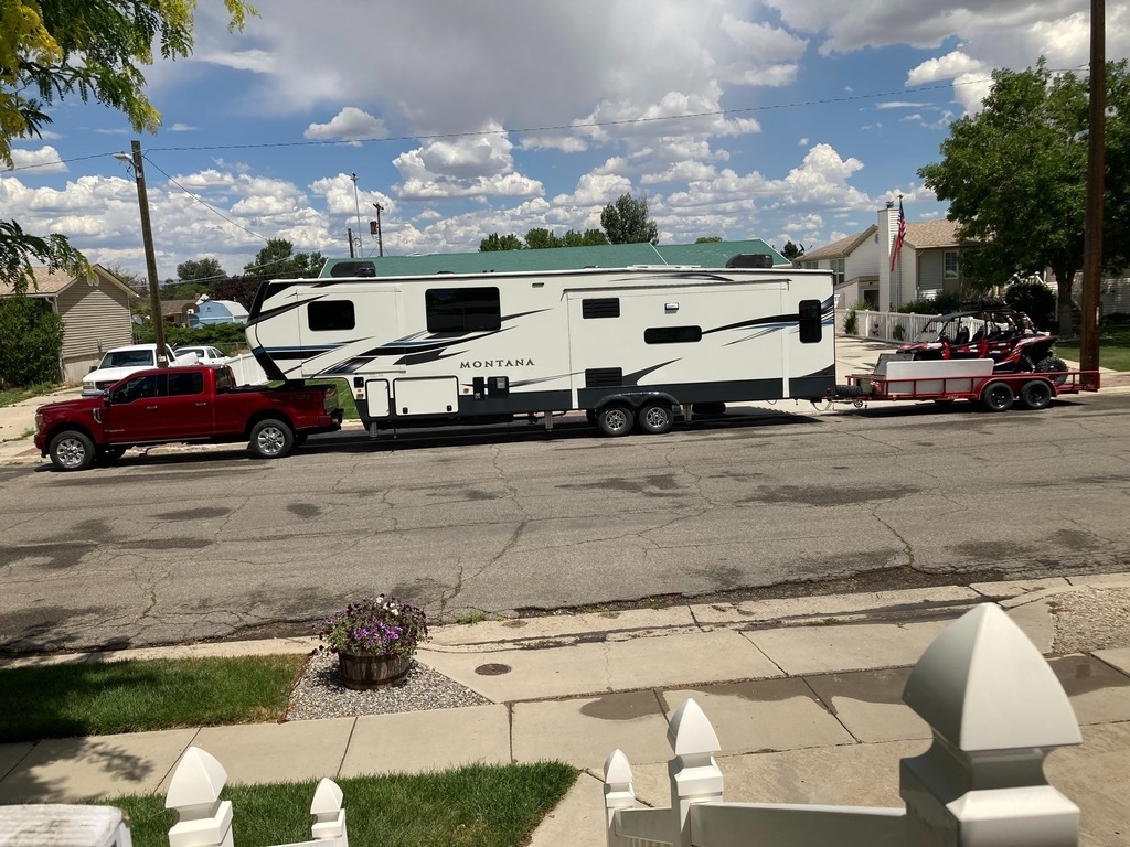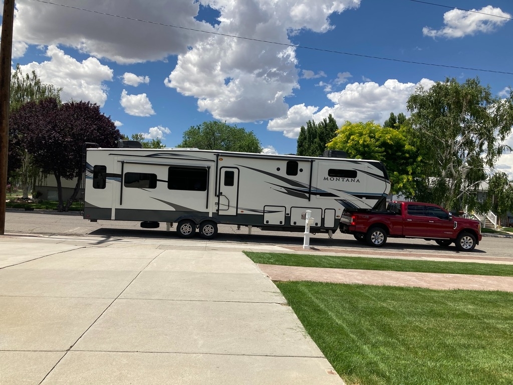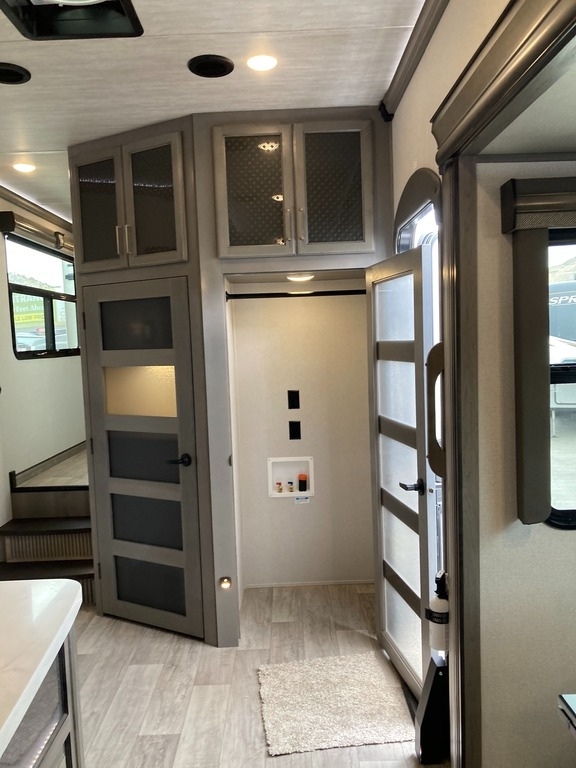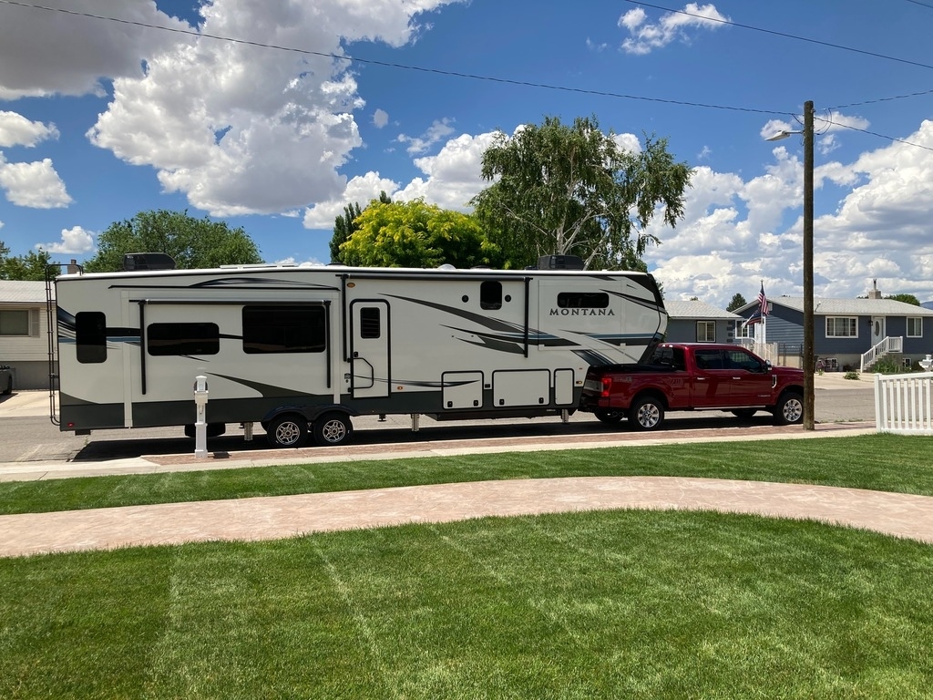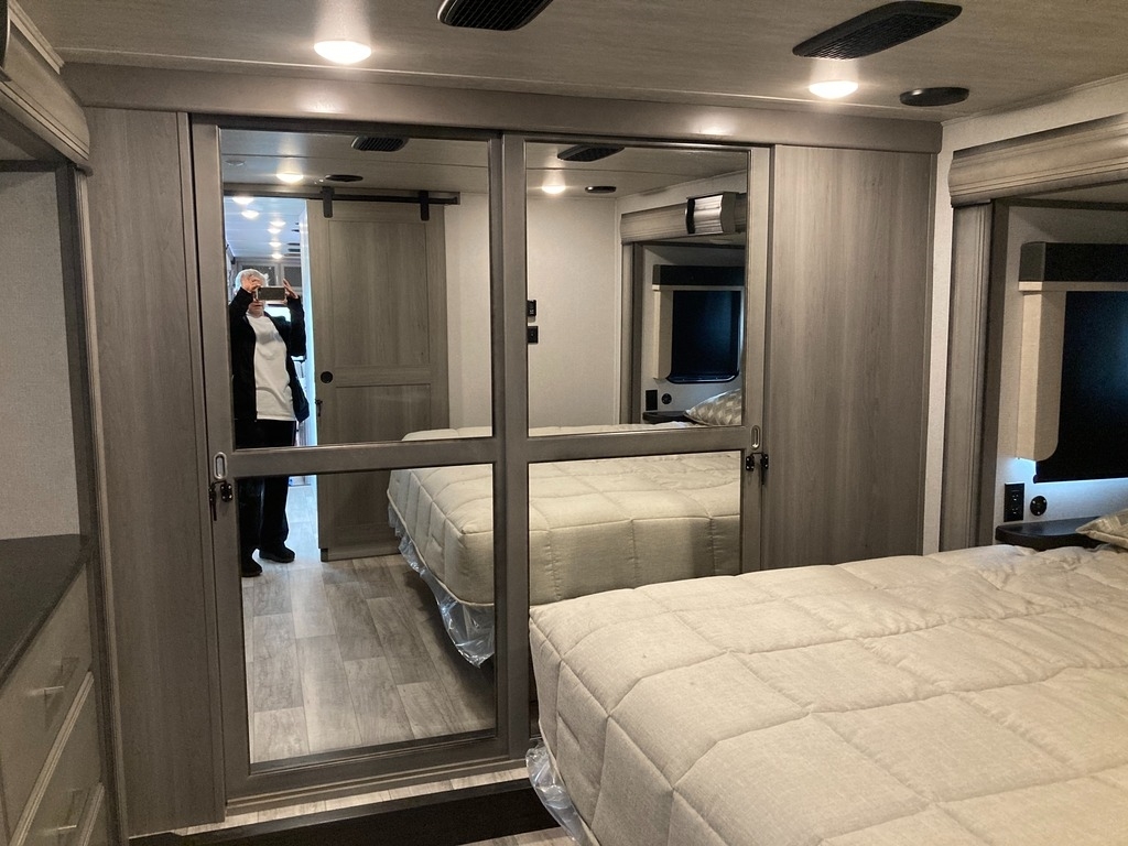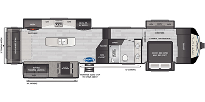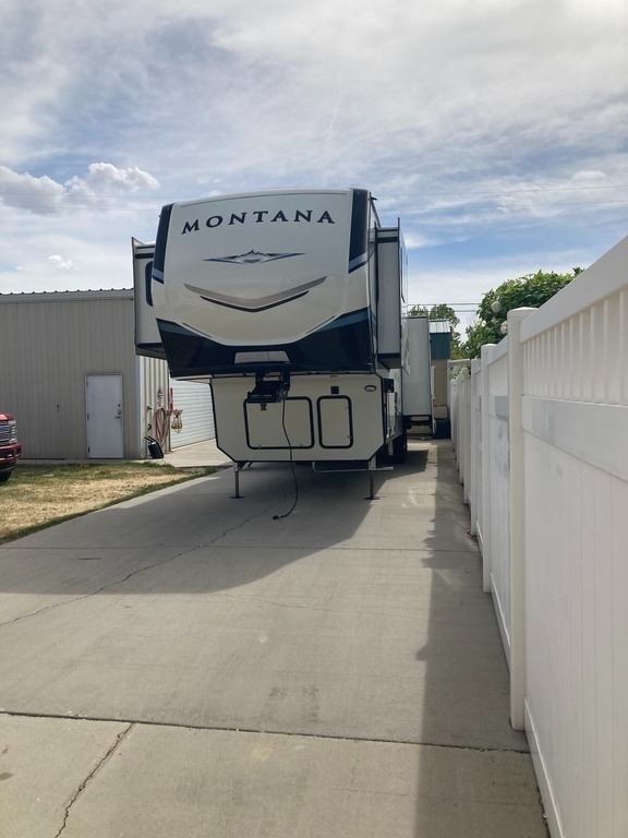 This 2021 Keystone has an overall length of 41 feet and comes equipped with an Onan Generator, 4 Slide Outs, 2 Awnings, 2 A/C units and plenty of room to sleep 4.