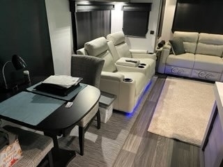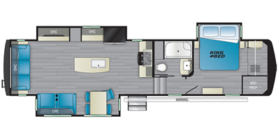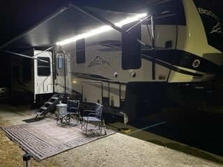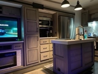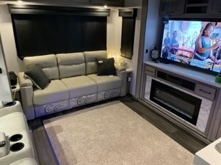 slide-outs, 1 power retractable awning, a fireplace, and plenty of room to