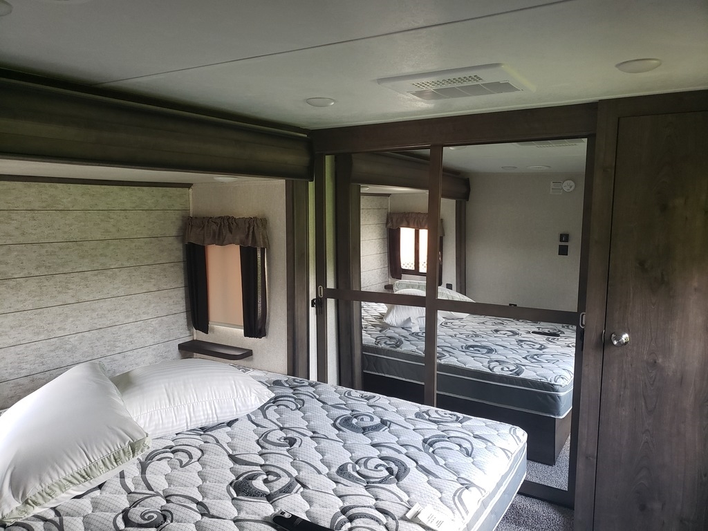 1 Power Awning, 2 AC Units, 1and ½ Bathrooms, a Bunkhouse, and sleeps 8.