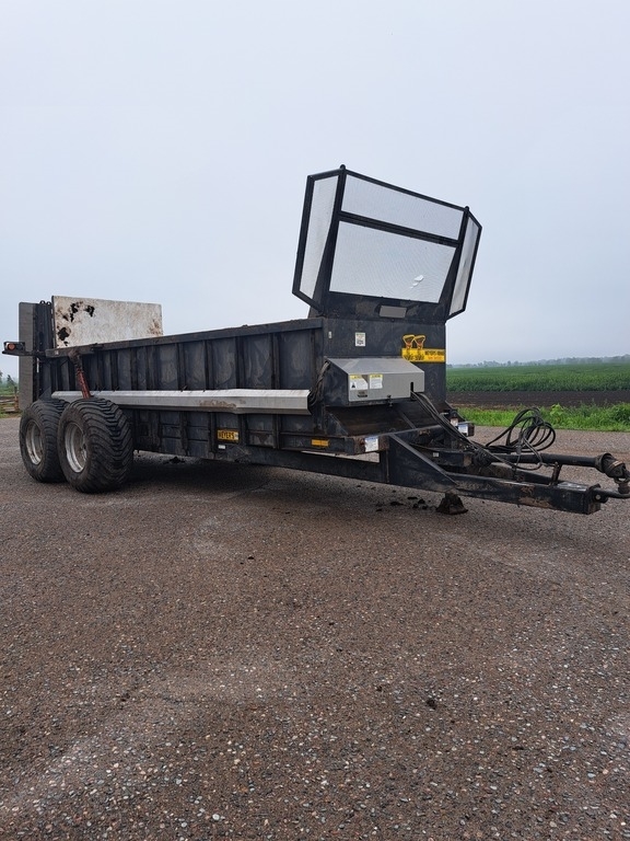 vertical manure spreader. Large 1000 PTO. Will haul 22.5 tons and 900 bushels.”