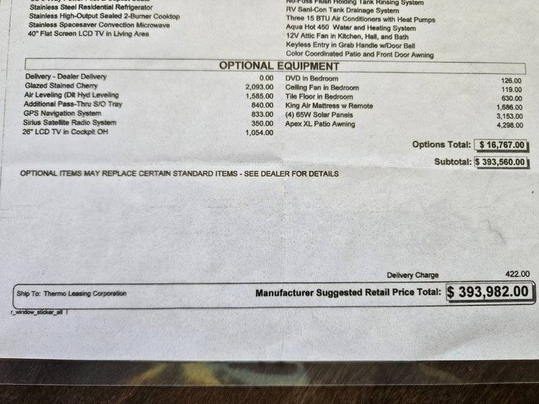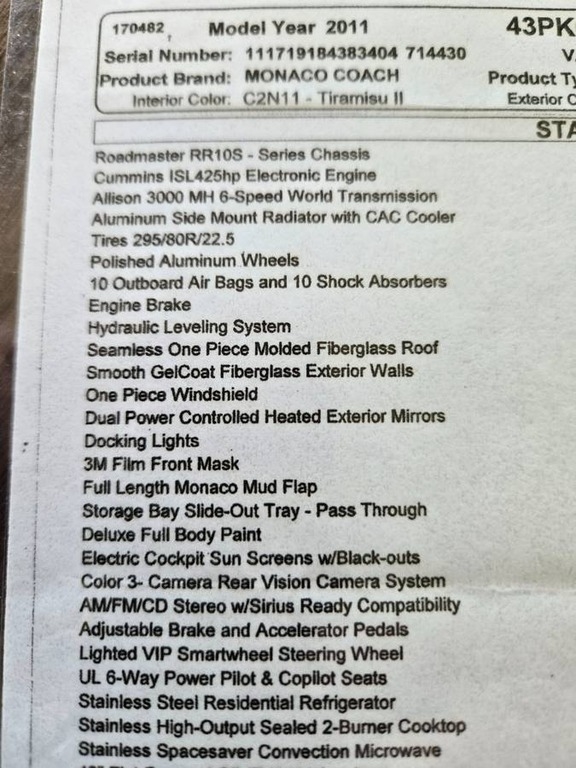 transmission with 78,000 miles. The overall length is 43.83 feet and comes