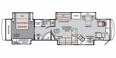 Monaco is powered by an 8.9L I6 Cummins diesel engine and a 6-speed automatic
