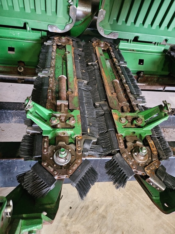 adjustments to accommodate varying crop conditions. Additional enhancements such as the auger trough liner and corn