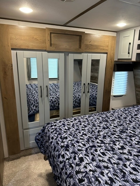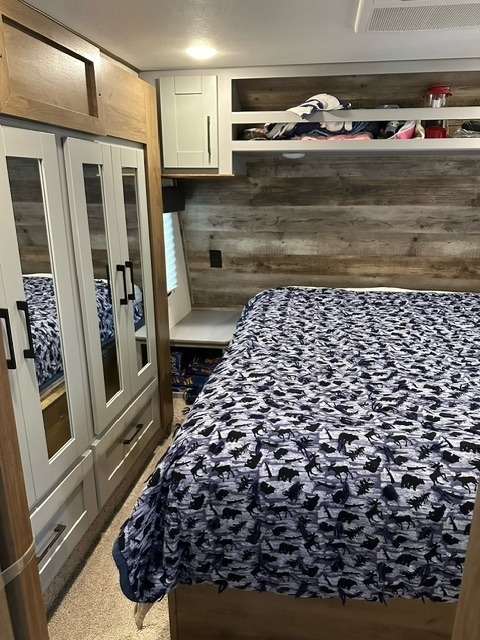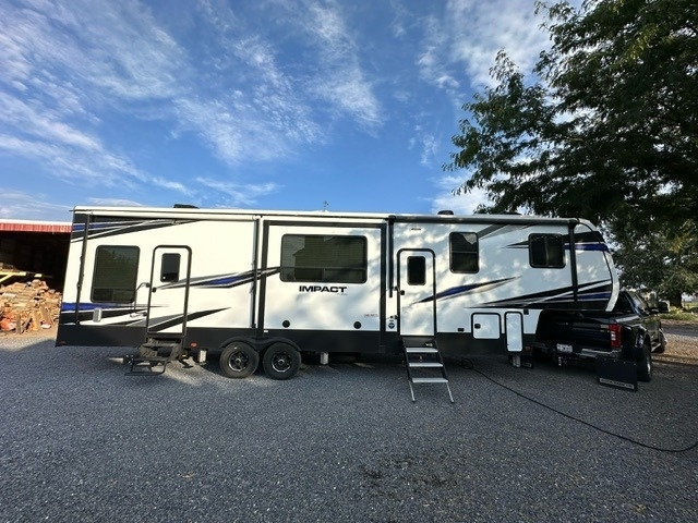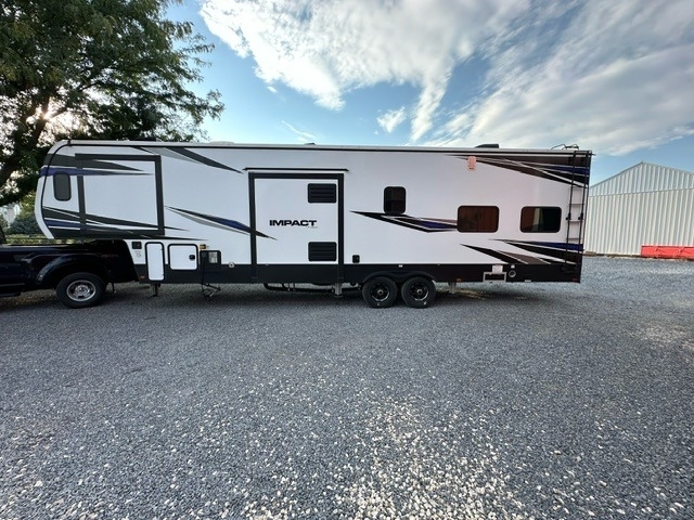 This Keystone Impact has an overall length of 39 feet and comes equipped with 3 power retractable slide-outs, 1 power retractable awning, 1 manual awning, 2 A/C units, a solar panel, a 13-foot garage, and plenty of room to sleep 7. This unit has been well-maintained.