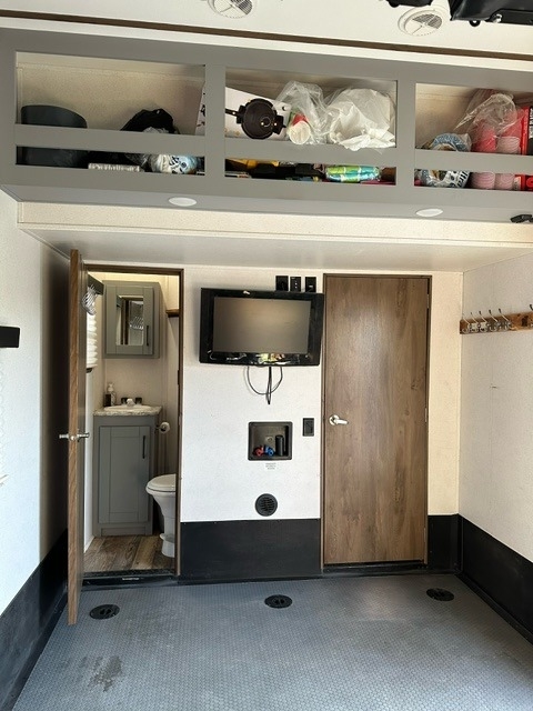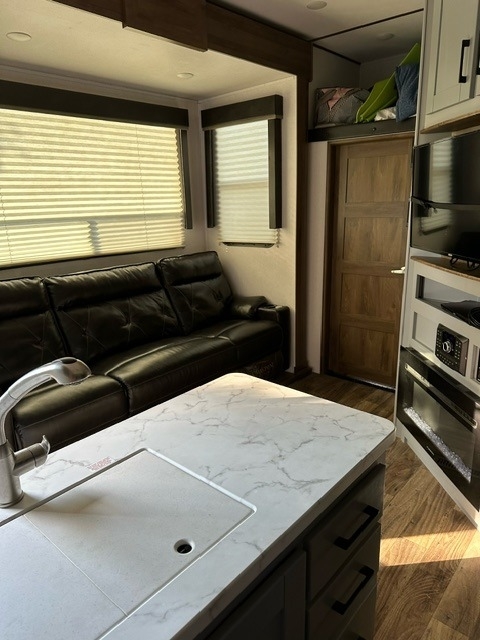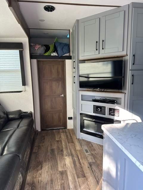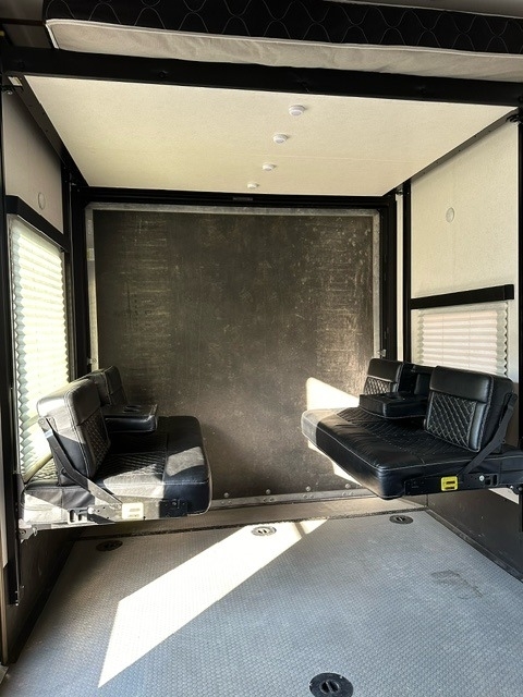 “2020 Keystone Impact 367 Fifth Wheel Toy Hauler, perfect for adventure seekers and families alike! This model features a powerful 190-watt solar panel paired with a robust 1500-watt inverter, providing all the energy needed while off the grid. The exterior boasts a stunning ceramic coating, providing both durability and shine, while the luxurious leather sofa option adds comfort and style to the interior. Stored safely under a barn, this toy hauler is in tip-top condition, and ready for the next journey. It's been well cared for as a single-owner unit and is fully equipped for its next adventure!”