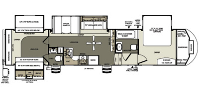 This Forest River is exactly the 5th Wheel you've been looking for! At 42-feet it sleeps 11 comfortably, so you can load up the entire family and hit the road! This unit has 1.5 Bathrooms, 4 slide outs, 1 awning, 2 A/C units and is loaded with amenities.