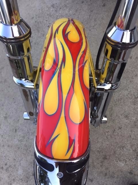 was put into the stitching, the flaming tank paint, fender paint, and the