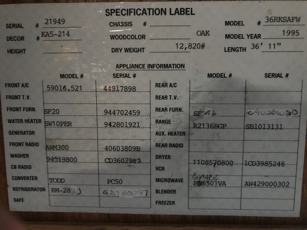 This One Owner ’95 Newmar Kountry Aire has an overall length is 36 feet and comes equipped with an 1 Slide Out, 1 Awning, 1 A/C unit, 2 Heaters and plenty of room to sleep 6.