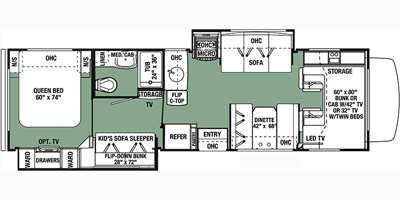 and it comes equipped with a 5500 Onan generator, 2 Slide Outs, 1 Power Awning,