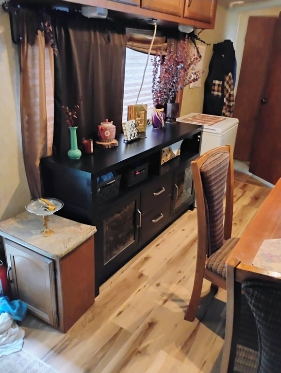 Vinyl And Carpet Flooring With Warm Interior Wood Finish