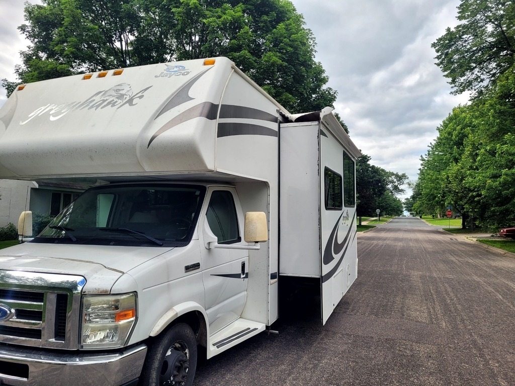 This Jayco is powered by a V8 305HP Triton engine, paired with an automatic Ford transmission. The Grayhawk has 53,000 miles and an overall length of 31 feet and comes equipped with 1 power retractable slide-out, 1 awning, and 1 A/C unit. Plenty of room to sleep 8. This unit has been well-maintained.